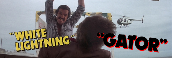 Both White Lightning and Gator were notoriously botched DVD releases from MGM, both stuck with cruddy full frame transfers that demolished the compositions of the second film in particular. Those eyesores were recycled in various double- and triple-feature combos for the bargain bin market, though flat letterboxed transfers popped up on TCM and later