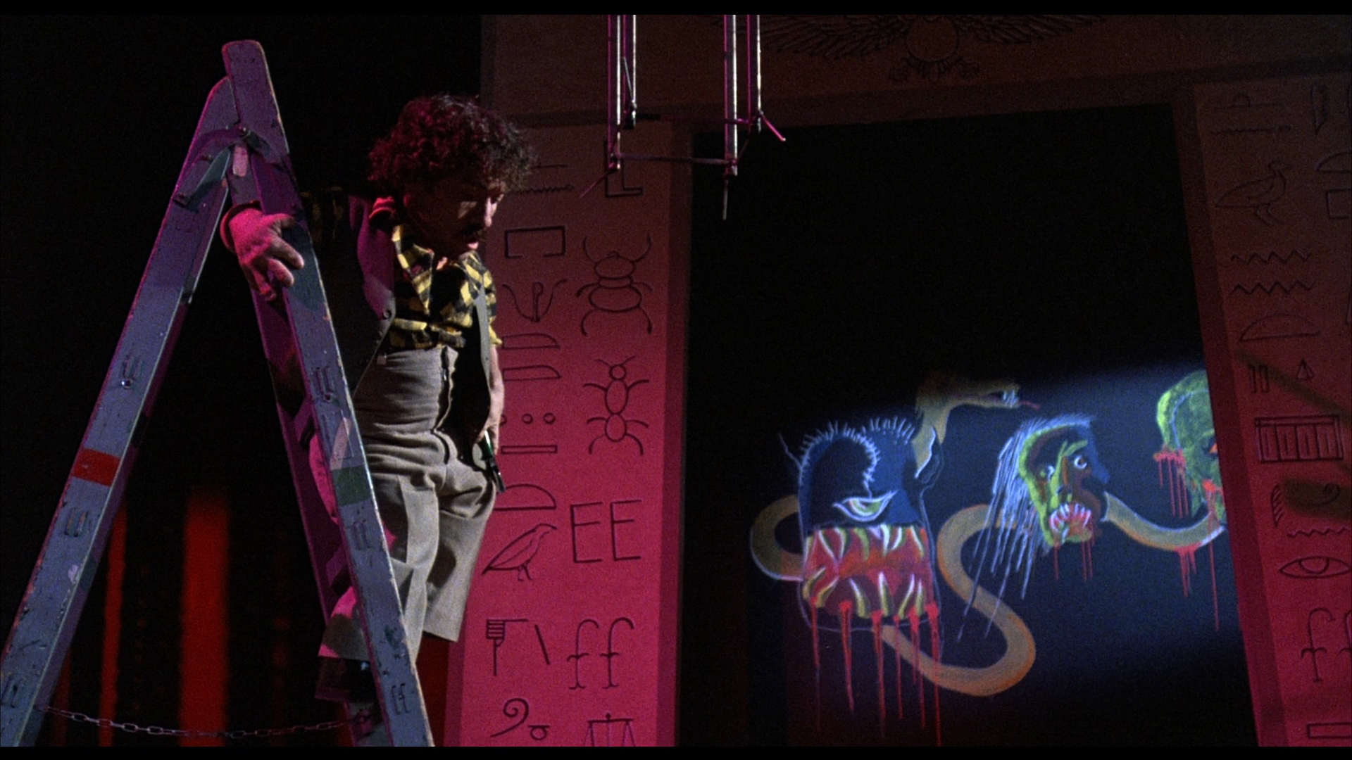 Ditching any sort of narrative connection to the first film, this one begins in the middle of the night as a sweaty, panicking priest (Dr. No's Dawson) hides out from red-robed cultists while trying to dispose of a ghoulie stashed in a sack. Naturally he fails and ends up in a barrel of acid, and the main story begins at a carnival where the new yuppie owner Phillip Hardin (Downing) intends to slash any jobs that might affect his bottom line. Onetime magician and operator of the big