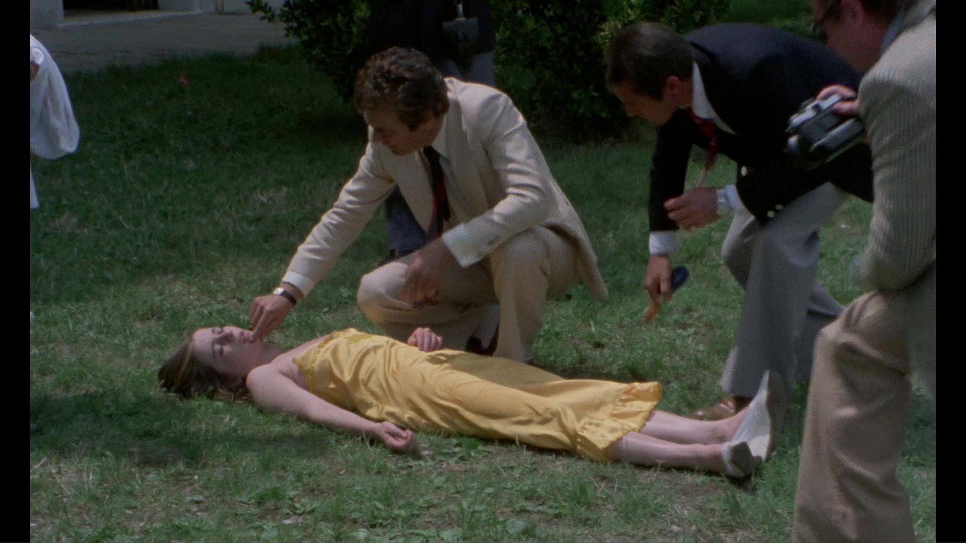 film like this get a Blu-ray special edition (its first North American home video release of any kind) -- in this case from Scorpion Releasing via Ronin Flix, complete with a limited slipcover edition including a folded poster sporting the outrageous, eye-catching new artwork by Devon Whitehead. Try hanging it up over your desk at work and see what happens. The Blu-ray opens with a disclaimer that the film is presented "from the best materials available to us," which in this case means what appears to be an unrestored HD scan of a good print. Don't worry though; if you're familiar with this film's history, it's a staggering upgrade over the blurry copies we've seen before and an attractive, colorful presentation. (A German Blu-ray prior to this also had English subtitles but without the color correction seen here.) There's a fair amount of debris and white specks popping up now and then, but in this case it doesn't detract from the tone at all. The Italian DTS-HD MA mono audio track also sounds quite good and much clearer than before, with optional English subtitles provided. So Deadly, So Perverse: 50 Years of Italian Giallo Films author Troy Howarth gets another giallo commentary notch in his belt here (or would notch on the bedpost be more appropriate here?) with what is easily his least prestigious assignment to date, but it also results in a jovial listening experience complete with recurring swigs of J&B, hilariously escalating exasperation with "cut-rate Maurizio Merli" Blynn's constant egg business, and more than you ever needed to know about the intersection of giallo and smut. He doesn't even try to make a case for this film in the upper echelon of its peers but also engenders more affection for it than many viewers might possess going in. Bonus trailers are also included for The Psychic, The Gates of Hell, Murderock, Red Rings of Fear, and Opera.