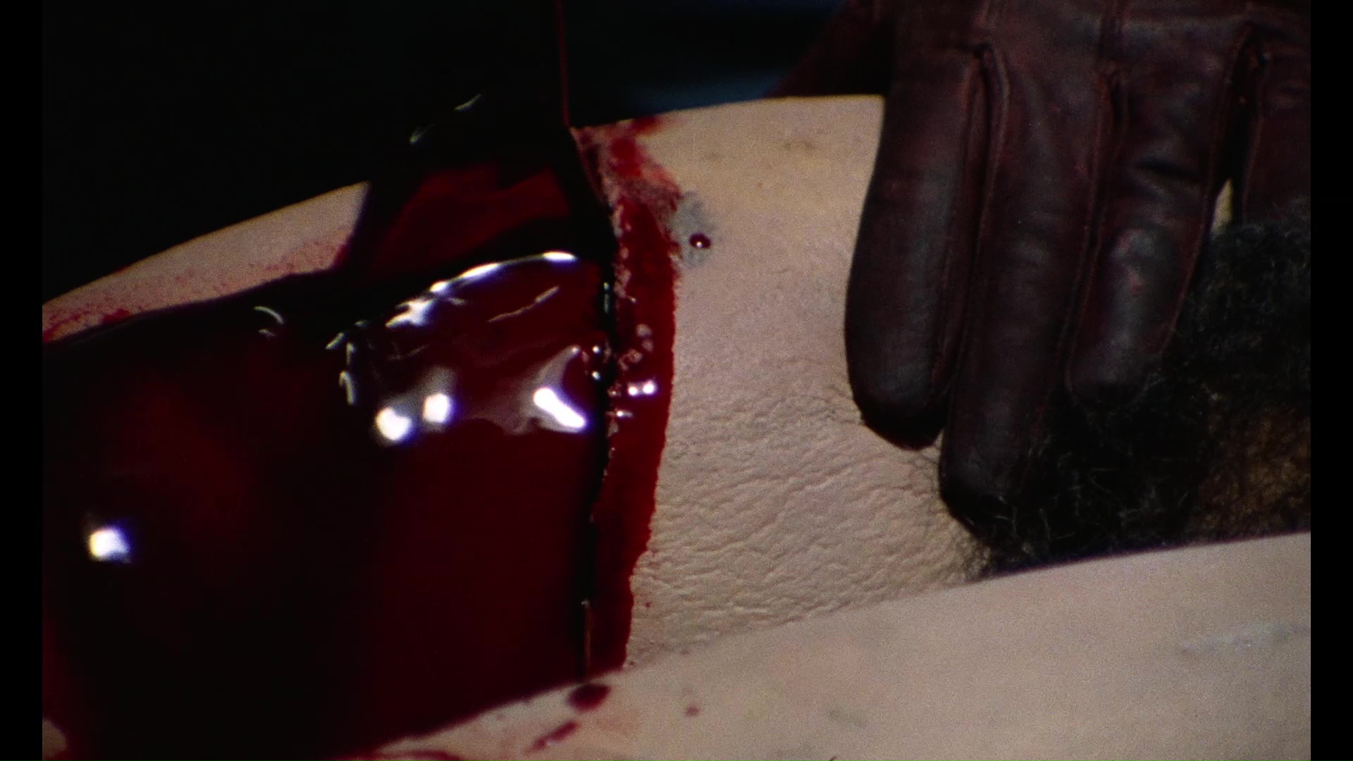 wildly disreputable Giallo in Venice (or Giallo a Venezia) rolled around at the tail end of the '70s, the Italian thriller subgenre that spawned the film's title had slid in a truly bizarre (but temporary) direction that now seems fascinating. The seeds had been sown all the way back in 1971 with the ultra-sleazy Slaughter Hotel and its graphically sexual variants, but as giallo box office turnout was declining around 1977, it became more common for softcore and even occasional hardcore sex elements to become a major selling point, for better or worse. Among these offerings were the sordid Sister of Ursula and the shameless Play Motel, but nothing else out there is quite like Giallo in Venice. Here the viewer is assaulted with a mixture of low-budget sexual shenanigans of varying degrees of explicitness, swirled around with some of the nastiest murder sequences to spew out of Italy including a still-shocking sequence involving a kitchen table leg amputation.