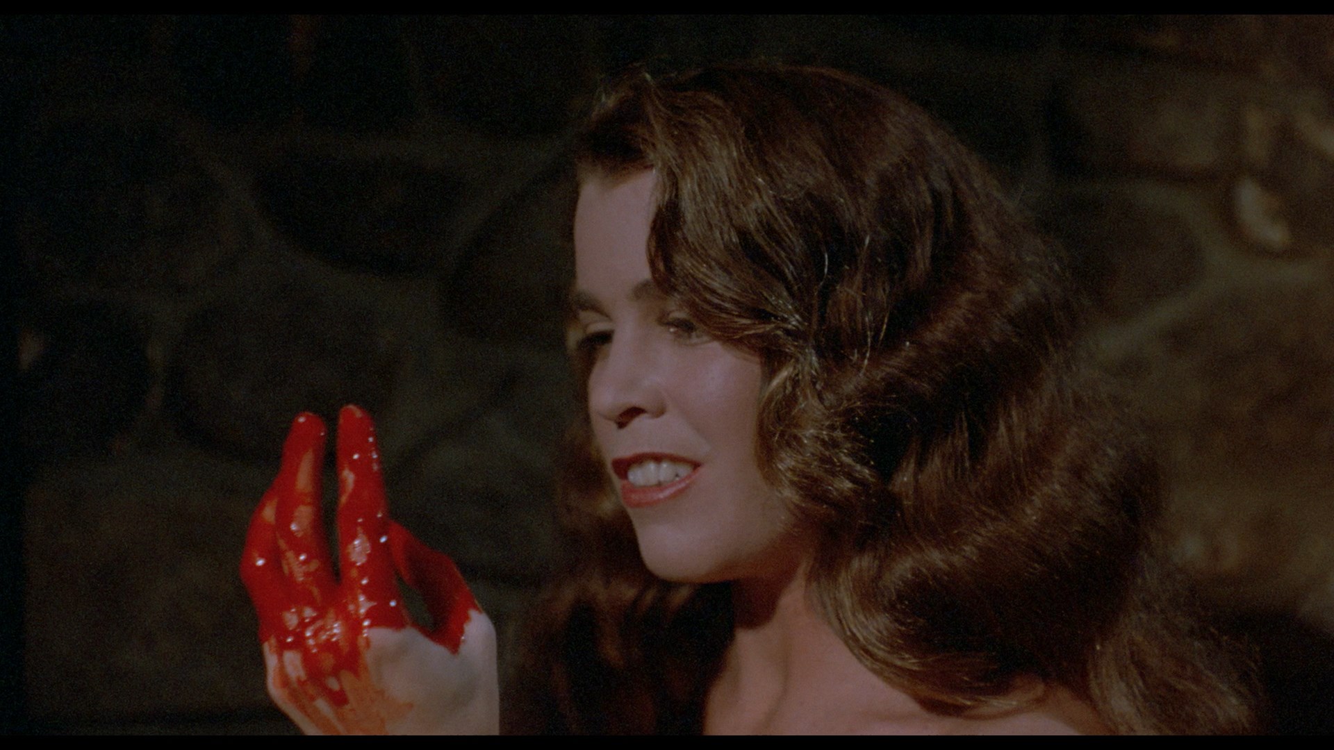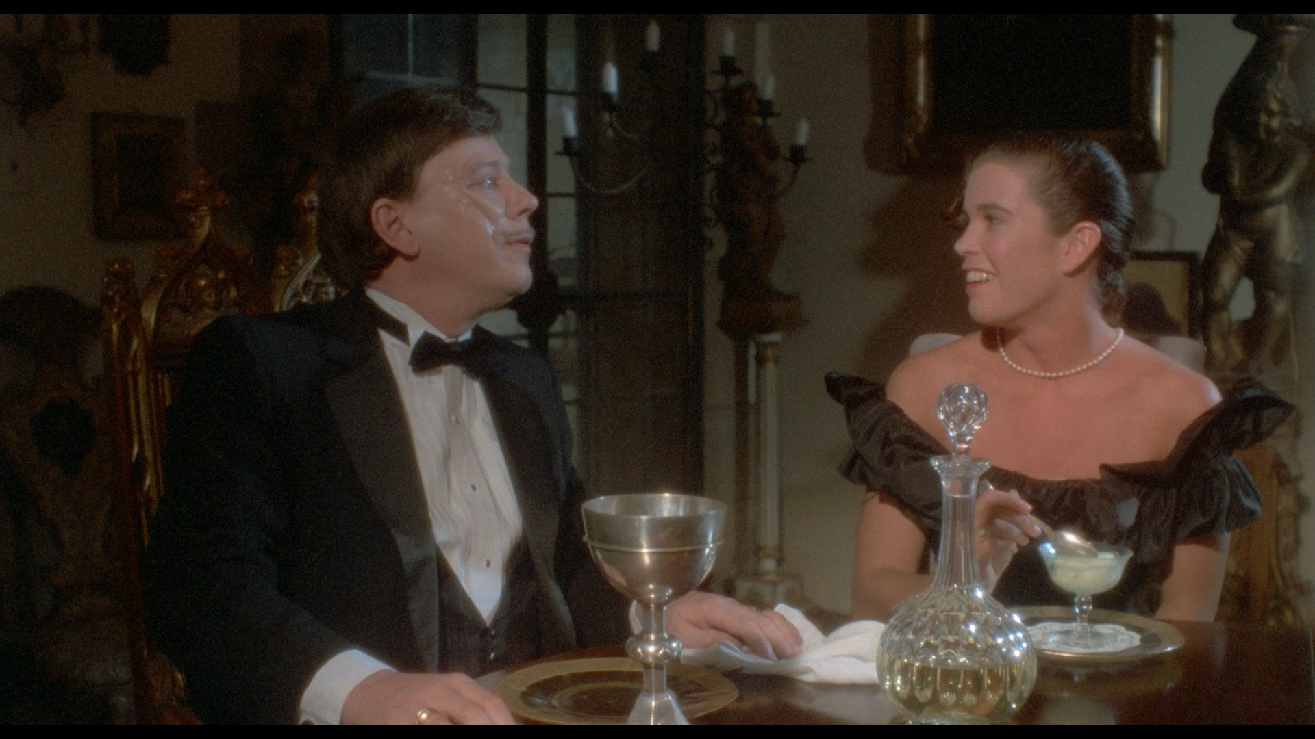the film no favors at all. Fortunately you can toss any of those editions away thanks to the 2021 Blu-ray from Vinegar Syndrome, which features a limited edition slipcover and a wildly inaccurate plot synopsis. The new 2K scan from the 35mm original camera negative is a tremendous improvement over anything we've had before, finally bringing out the fun blue-colored lighting and little details in the darker scenes that were completely obscured before. As with the other VS Troma titles, it truly looks like a different and much better film here. The English DTS-HD MA 2.0 mono track also sounds great throughout with no significant issues, and optional English SDH subtitles are provided. Two audio commentaries are included, a solo one with writer-director-producer John P. Finegan (who tends to go quiet a lot since he's by himself), and a second with editor-assistant director Tom Rondinella and second assistant camera/second assistant director Bill Pace. There's also a new making-of featurette, "28 Seconds of Violence" (29m40s), featuring Finegan, Rondinella, Pace, Cosimano, and sound designer (and composer) John Hodian. You get understandable overlap between the three at times but they're all worth checking out as you get to find out all about the four-week shoot in Philadelphia, the back story behind the house and its art holdings (as well as the owner, who appears in a one-scene role), the dialogue scene rewritten by an actor that got a positive critical response, thoughts on the Troma revisions versus the "classy" original intentions, and plenty more.