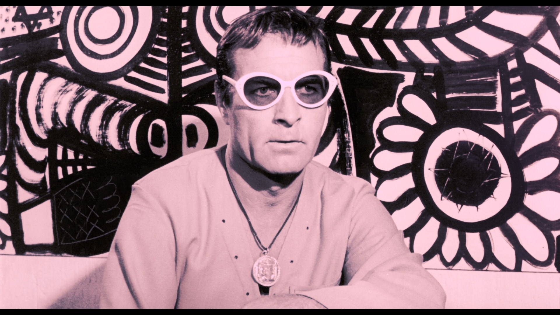 obscuring the copyright info for some reason, and full-color versions of a couple of short trip sequences with added digital psychedelic effects. (The B&W one just adds a light color tone instead.) A "Behind The Scenes Producer Commentary" (7m42s) is actually an SD video interview with producer Robert Weinbach about the real-life inspiration for the film (involving the murder of an Ibiza antiques dealer), the fundraising he conducted in St. Louis, his experiences with William Burroughs and the beat counterculture, his own encounter with LSD at a restaurant, and a run-in with Mick Jagger and Keith Richards; a one-minute gallery with music is also tacked on at the end. "50’s LSD Experiments" (10m27s) is an archival educational short about medical experiments with lysergic acid, pulled from a dupey VHS source but nice to have here for posterity. " Take An Acid Trip With Bosch and Bruegels" (6m25s) is an odd tapestry of animated paintings by the two legendary artists, accompanied by a psychedelic soundscape On a similar note, "Fractals Meet Bosch" (3m28s) by Peter Ludwig Wegener uses digital morphing techniques and spacey jazz music to turn The Garden of Earthly Delights into a video trip of its own. That same technique goes modern with "Pouff’s Grocery Trip" (2m53s), which looks like a trip through a Toys 'R' Us store on acid. Finally an image gallery (1m27s) collates a number of promotional B&W stills. The first pressing (1,000 units) also comes with a full color slipcover designed by Hauntlove and an insert booklet reproducing the original press book.Tinted Version