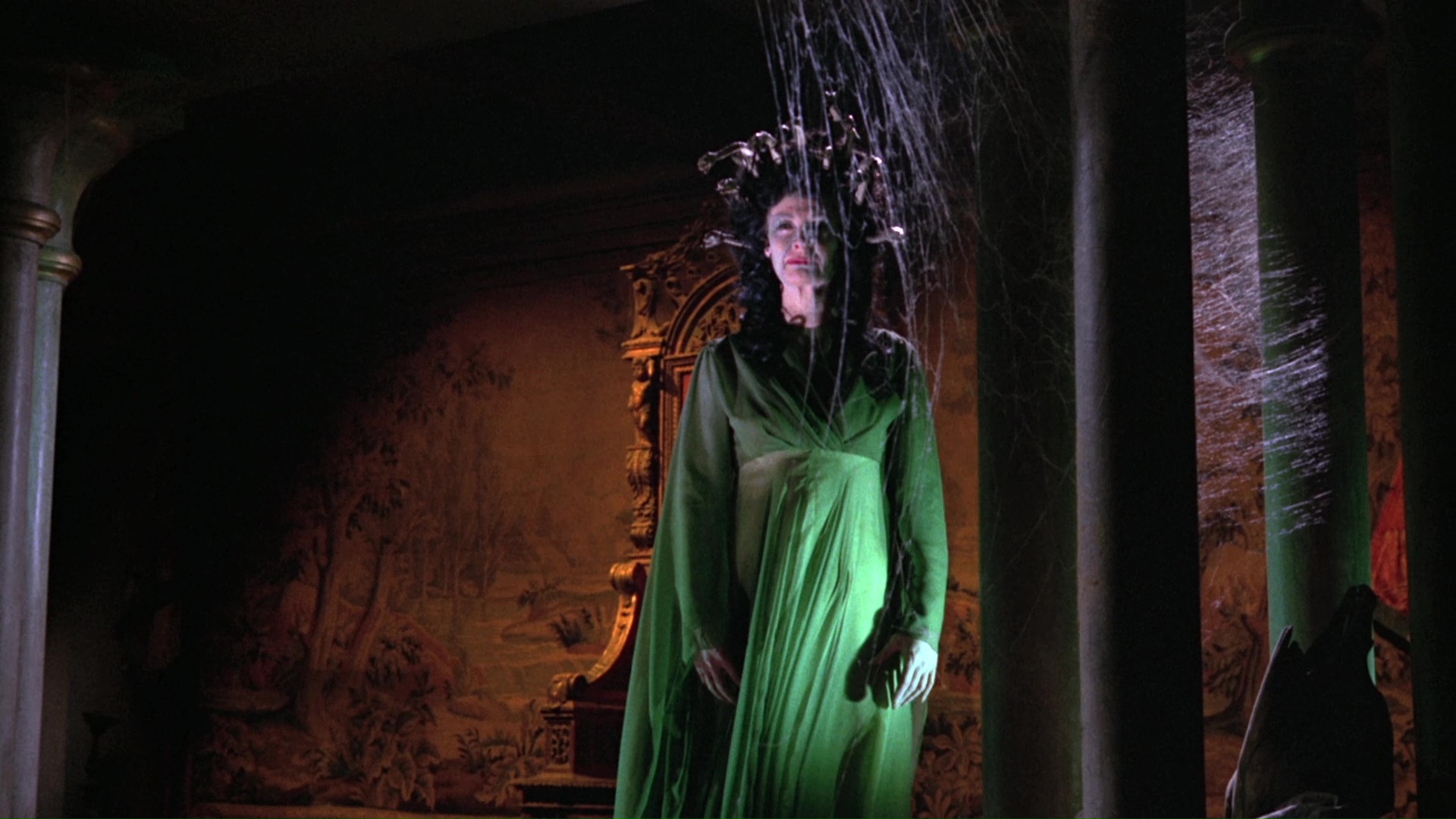 features more than enough mood and visual panache to overcome what would be crippling shortcomings in other horror films (mainly some famously inadequate gorgon effects in the final scenes and a plot that doesn't always make a ton of sense). The fairy tale aspects have been frequently noted over the years, and with good reason; along with Brides of Dracula and Kiss of the Vampire, it has one of the most potent depictions of an otherworldly European village suffocating under the forces of darkness.