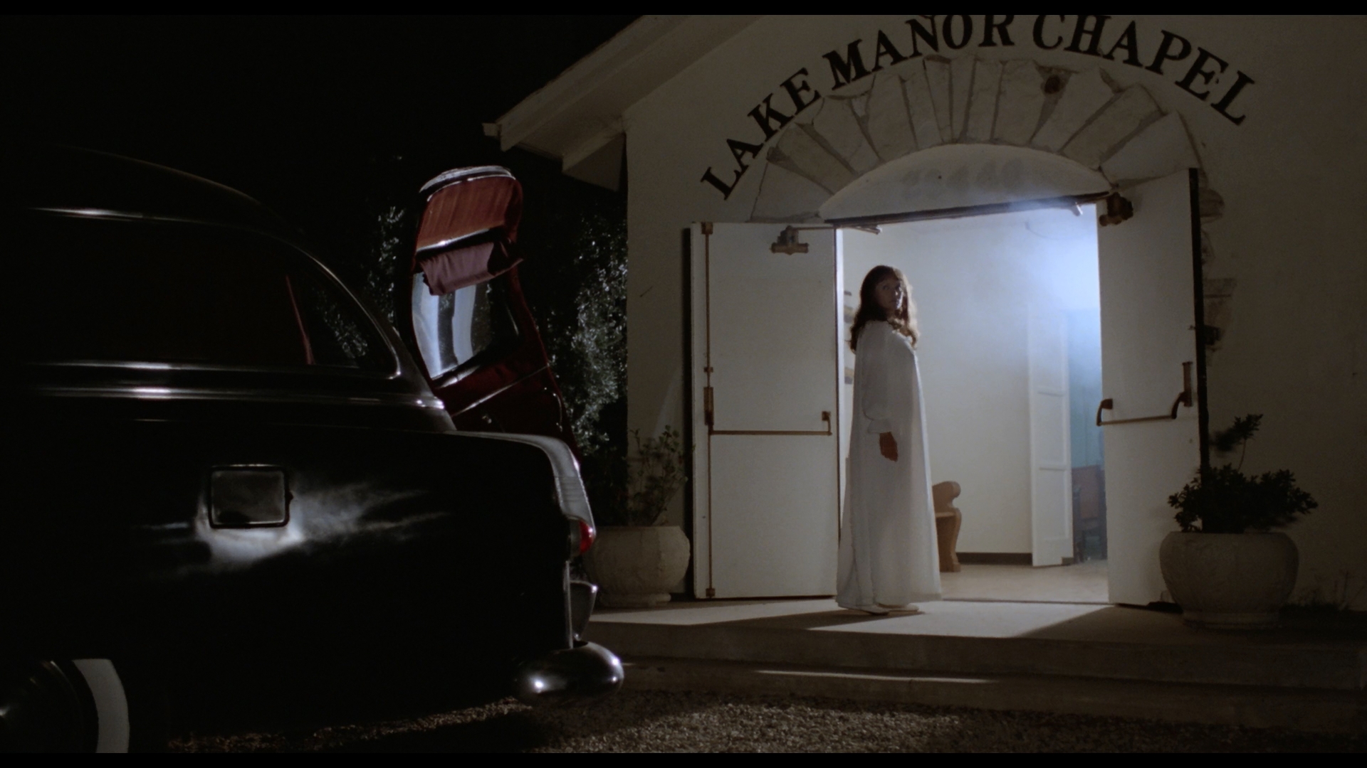 films like Burnt Offerings, as this script is basically what would happen if you tossed the two into a blender. It's all a tad muddled and ultimately leads to a puzzling dead end of a final scene, but some of the spookier visuals involving the hearse manage to make an impression and the evocative score by Webster Lewis manages to nearly pull it all together. There's also a fairly nifty little twist just before the climax, too; for viewing on a dark and stormy night, it definitely fits the bill. Be sure to keep an eye out for future director Perry Lang (who also appeared in Alligator the same year and suffered a much bloodier fate) and a very young Christopher MacDonald in his theatrical debut, which he followed up with the immortal Grease 2 before moving on to films like Thelma & Louise.