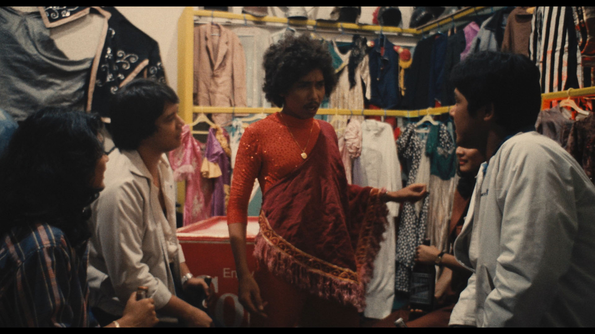 enough detail and film grain here to keep it from turning into a smearfest. The DTS-HD MA 2.0 Tagalog audio options include the original damaged track and a restored option, with optional English subtitles; you might as well go with the restored one unless you want to hear how it sounded in its raw form. Also included are an interview with screenwriter Raquel Villavicencio (31m22s), who wore many other hats in the industry over the years and talks about her creative process with De Leon after they crossed paths on much earlier films, and a 14m1s behind-the-scenes 8mm promo cut with snippets from the final product. You get some more De Leon with 1982's Aliwan Paradise (28m49s), his contribution to the multi-national anthology film Southern Winds, here offering a music-packed look at a song competition meant to distract from turbulent current events. Finally you get a sample of LVN's earlier period with 1947's rare Miss Philippines, a feature by Gregorio Fernandez (99m26s) with optional English or Tagalog subtitles. This fizzy romantic comedy about a colorful cast of postwar characters dealing with nightclub life, infidelity, and odd meta touches about the entertainment biz; the quality here is extremely rough (especially the first reel which was preserved with h a home movie camera off a projected screening). A brief 2m2s demo shows how the film was salvaged as much as possible given the iffy nature of what survives. An insert booklet features extensive extracts from De Leon's Last Look Back and makes for fun reading as he talks about the "racist comedy" approach, the musical inspiration of Evita, and the initial banning of his film until he added a disclaimer at the beginning so people would clearly understand the nuns were impersonators. Also included are an informative piece by Jessica Zafra about Miss Philippines.