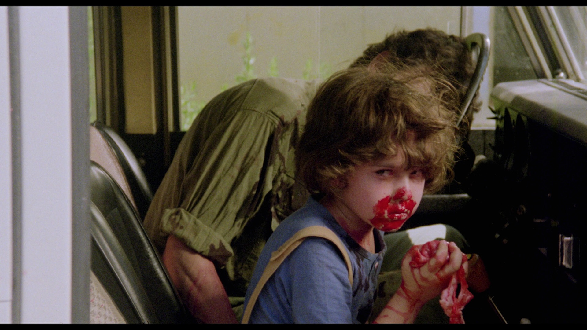 film hopped over to Severin Films in the U.S. who outfitted it with a UHD and Blu-ray edition for retail consumption as well as a three-disc option with exclusive packaging and a 14-track soundtrack CD directly through their site. Incredibly, they also commissioned a new tie-in novelization by Brad Carter that comes in at a whopping 692 pages and incorporates the many ambitious concepts (in consultation with Drudi) that didn't make it to the end result. The UHD and Blu-ray have the feature film (with Dolby Vision on the former making it an eye popper similar to the vibrant presentation on the U.K. disc) with DTS-HD MA 2.0 mono English and Italian tracks with optional English-translated or SDH subtitles. A trailer is on both discs, while the Blu-ray has the rest of the extras starting with "Go To Hell" (12m33s) in which Mattei talks about his mania for seeing horror movies anywhere in Rome, his memories of this film and the cast including several Spanish supporting thespians, the improvisational nature of his work, and the tricks to staging performers acting like and being attacked by zombies. "The Beauty and the Zombies" (11m20s) has Newton looking back at her enjoyable, hard-working memories of the film after jetting off to sunny Barcelona to face off against the undead. Then in "My Big Chance" (21m41s), Garofalo explains his "crazed horse" theory of acting, the experiences that impacted him as a child to get into performing arts, and his outlook on appearing in a slew of crazy exploitation movies. In "Lt. Mike London Is Back!" (26m35s), actor José Gras goes into his busy time making this film during other projects while being based out of Sitges, as well as the tag team process between Mattei and Fragasso on the set including the language similarities they had to work with. "I Will Never Be A Zombie" (10m56s) features actor Bernard Seray reminiscing about his early days as a fashion model and jury member, the loose production that even made use of a bunch of dead fish on the beach, and his positive rapport with the "polite" Mattei. In "My Son Is A Zombie" (8m6s), actor Pep Ballester talks about his early acting in theater in Santa Matrona in Barcelona, the casting call for a "monster film" that brought him aboard, the background he had for his distraught character, and the makeup process for when he gets eaten by his own kid. Next up in "Producing The Apocalypse" (5m36s), producer José María Cunillés briefly chats about the methods used to integrate the plentiful stock footage, the location scouting out in nature, and the frequent reselling of this film over the years. "Papua New Guinea In Barcelona" (42m24s) is a very extensive locations tour with Gras, "the legendary Robert O'Neill," and Xavi Sanchez Pons going into astoundingly precise detail strolling around all the existing locales from the film. Finally, "Peter And The Test Tube Babies' Zombie Creeping Flesh'" (17m41s) features punk singer Peter Bywaters looking back at the U.K. punk scene where he made his mark and the creation of the band's signature song named after this film. SEVERIN FILMS (Blu-ray)