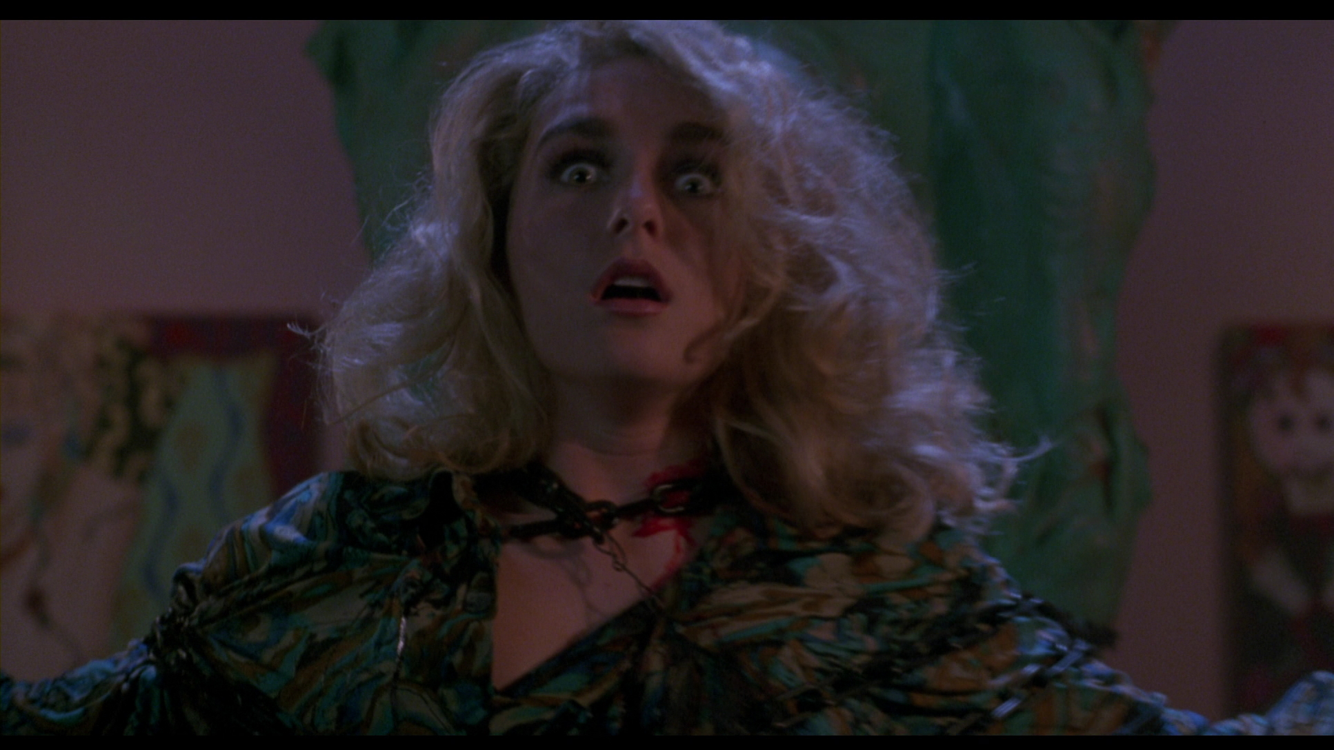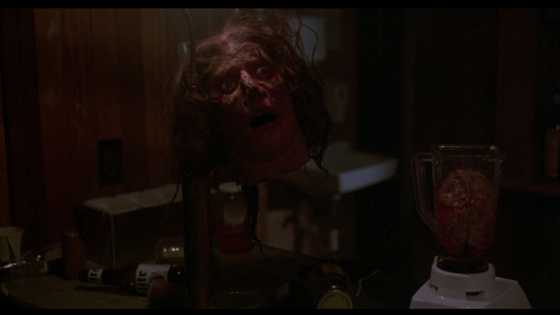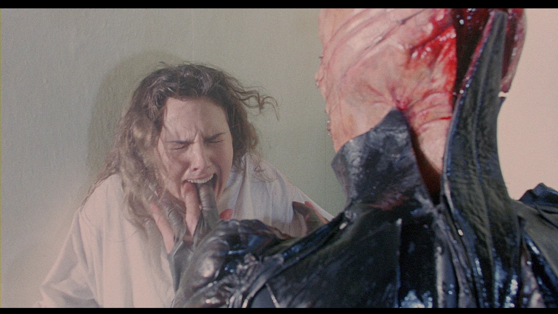 boy for this film and its mascot in all future installments. With that in mind, newcomers may be surprised at the darkly romantic tone of this first film, which plays with tropes like the evil stepmother and doomed lovers to churn out a string of set pieces so extreme you have to wonder whether the MPAA was napping out back when they awarded this an R rating, demanding only a handful of slight cuts to reduce its "tone." Apart from Bradley, the most valuable players here are definitely Laurence, a very likable heroine at a time when good final girls were in short supply, and Higgins and Robinson, who have fun with their roles for reasons that can't be expounded upon here without spoiling the finale. (Robinson's final line was improvised on the spot and remains one of the greatest moments in late '80s horror.) It's also a visually striking film with lots of bold lighting, inventive makeup designs, and nifty production design, all supported by a memorably barnstorming music score by the great Christopher Young (a New World favorite stepping in when the studio rejected an early submission by British group Coil). Unfortunately New World's involvement led to a few unfortunate issues, namely the imposition of atrocious, disturbingly flat American dubbed voices on Chapman (and his skinless incarnation played by Oliver Smith) and Hines, which sound absolutely awful and flat. Few viewers noticed the tinkering, however, and the film became a big hit despite a lot of critical grousing at the time like Roger Ebert's half-star review that posed the question, "Who goes to see movies like this? What do they get out of them?"