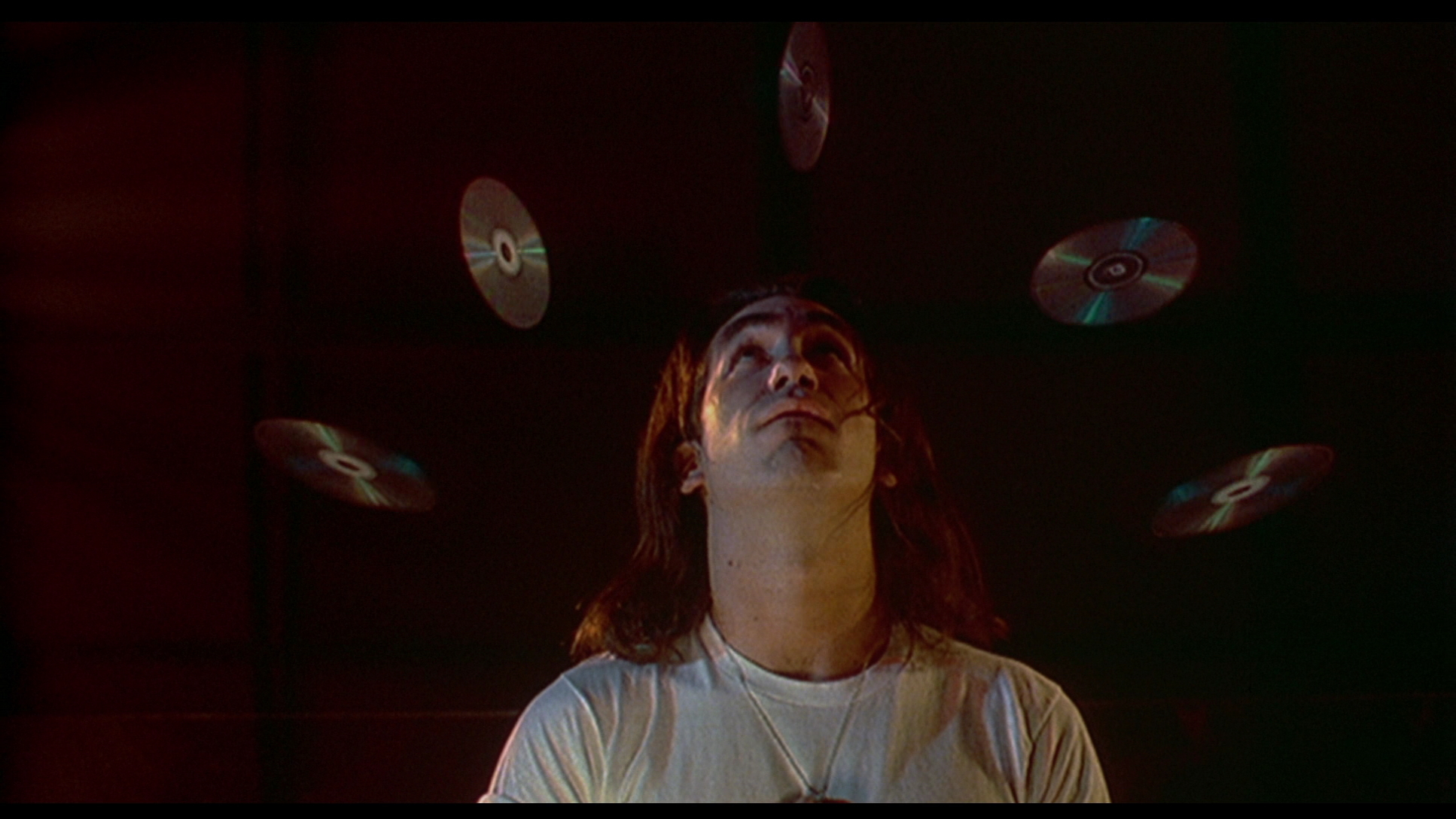 vibrant as it's going to get. A handful of effects shots (especially the creation of the CD Cenobite - see image on the left) appear to have been generated on video with some telltale aliasing and a reduction in resolution, so that ugliness was always inherent in the