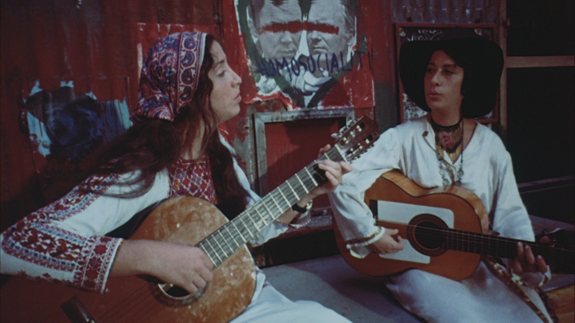 A 2009 interview with Tzarfati (in English) and Wolf (in Hebrew with English subtitles) in Tel Aviv runs a whopping 56 minutes and sheds quite a bit of light on how this project came together, mainly through a series of friendships and recommendations to secure enough financing to get it off the ground. "This hippie status is based on artificiality" seems to be the closest we get to an explanation of the film's theme, and there's a lot of discussion of the film's first-time director, the late Amos Sefer. Perhaps the most startling sideline concerns whether the married Tzarfati really "screwed" Avidan, which leads into an eye-opening anecdote about Richard Harris and Romy Schneider! The whole shoot took about twelve days, which included exhausting marathon filming in the desert, resulting in a