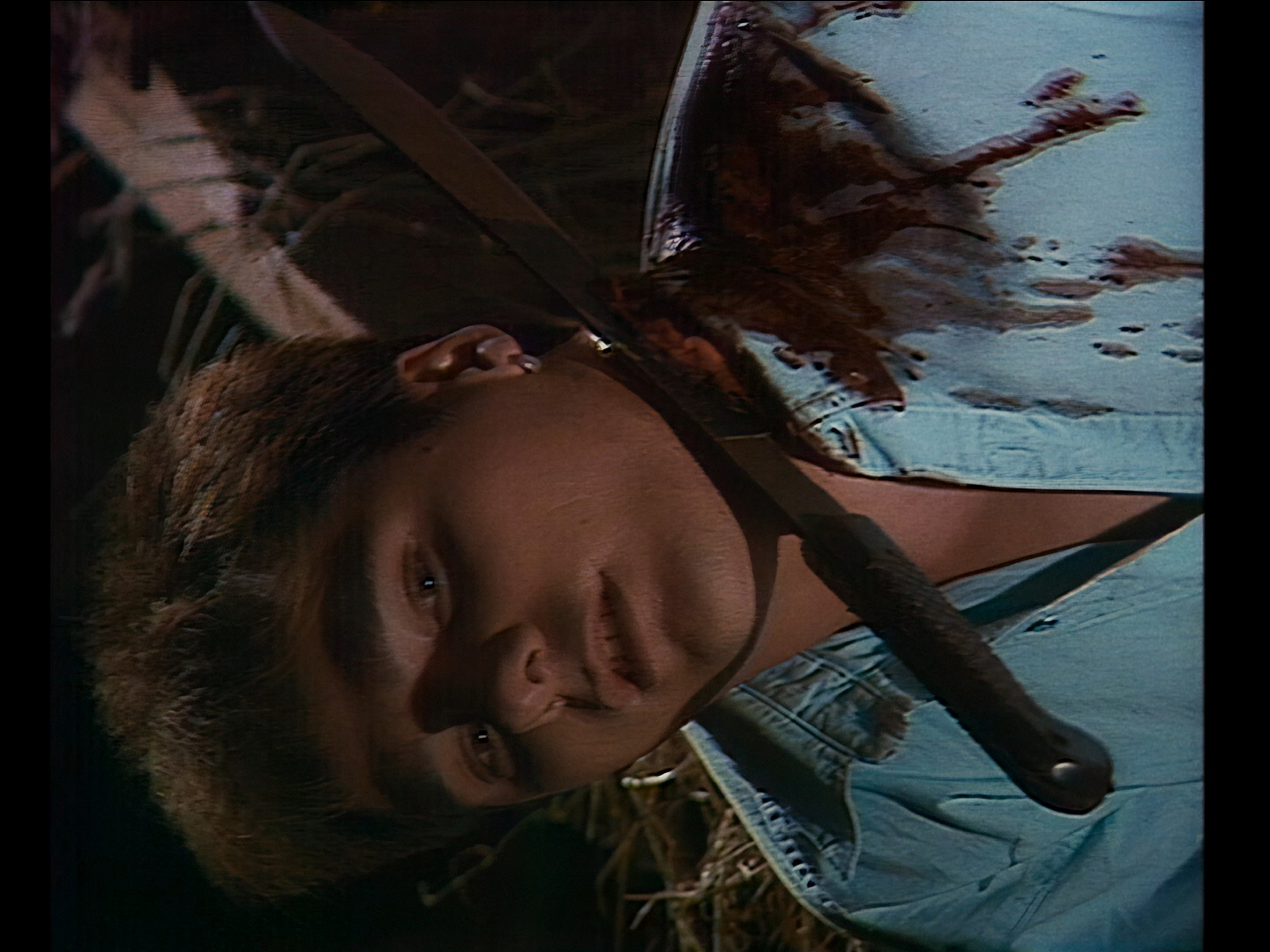 was carried out by ROAR Digital in Melbourne, Australia." This still looks very much like a 1989 shot-on-video production with all the limitations that entails, but quality-wise it's definitely in the upper end of VHS-era horror indies upgraded to Blu. There's a bit of vertical squishing to the image that appears to be baked into the source, as there's a variety of different cameras and lenses at play here depending on the scene. What's really surprising is the DTS-HD MA English 2.0 stereo track, which features a very active and spacious sound mix with the music in particular sounding great. The optional English subtitles are very welcome given how much dialogue is either mumbled or drowned out by background noise, so prepare to switch it on at regular intervals. (For some reason the captioner keeps spelling the main location as "Lake Inifiniti!") A new audio commentary by comedian Tony Martin and film historian Jarret Gahan is also a lot better than you'd expect; in the past, seeing the word "comedian" on a commentary was a huge red flag, but in this case they both know their stuff very well and have tons of info to offer about the film's production, some other horror films developed in tandem that fell by the wayside, and trivia about all the cast and crew members.