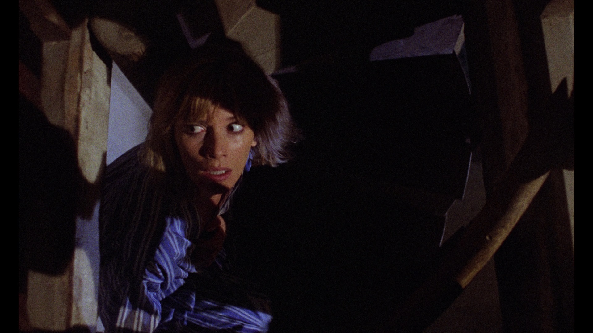 Italian track here is a godsend as it's much easier on the ears. Here Ercolani and Howarth provide a new commentary going through Fulci's career at the time, Monreale's work with him and elsewhere, the production background of the series, and plenty more. In "Fulci House of Horrors" (16m43s), omnipresent set designer Massimo Antonello Geleng covers his numerous Fulci projects, his admiration for the director going back to his comedies and other genres, and the resourcefulness required on films like this to come up with eye-catching visuals for pocket change. In "Sweet Muse of Horrors" (28m55s), Monreale speaks about her career starting with a fortuitous stroll with her kitten that led to multiple Fulci projects and permanent Euro horror legend status. "Editing for the Masters" (18m5s) has editor Alberto Moriani discussing his mentor Luciano Martino, his genre-hopping assignments in the '80s, and his work for Fulci and other filmmakers like Antonio Margheriti.