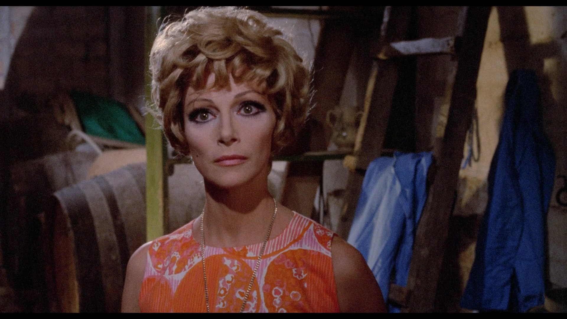 had already neared the self-parody point with the release of In the Folds of the Flesh, a lurid, trashy, incredibly appealing slice of opulent excess designed for those who had already become tired of traditional black-gloved killer antics. This time out the obligatory, English-friendly lead actor is Pier Angeli (here billed as Maria Pierangeli), a briefly hot Hollywood starlet from Italy who failed to make it to the big time and retreated home, only to die of a presumably intentional drug overdose in 1971. Here she acquits herself well with a dual (or triple?) role that fits in perfectly with the film's recurring barrage of Freudian quotes and cockeyed psychoanalysis.