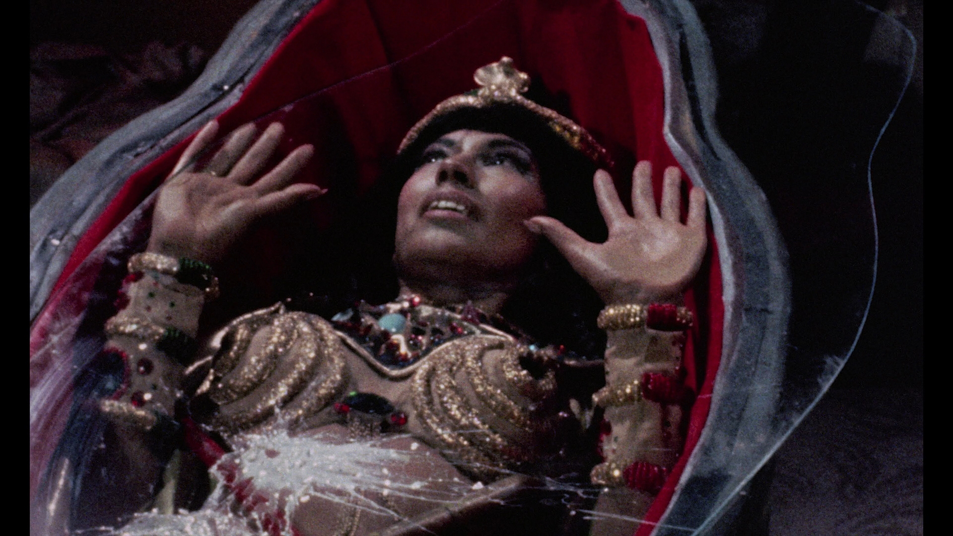 In the middle of Nevada, Bob (Browne) and Donna (Dawson) are summoned by archaeologist pal David (Eisley) to check out the Egyptian relics he's salvaged from a plane crash. As a quick study of the inscriptions reveals, whoever is in the presence of the inhabitant Princess Akana's body (Pons) in her tomb during a "full moon cycle" will "suffer the curse of the jackals," so of course David, not exactly the sharpest knife in the sarcophagus, decides to shut himself in and send the other two out for the evening. After night falls, David immediately