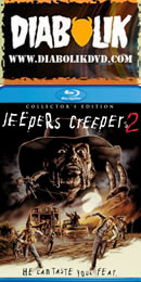 Even more successful at the box office than its predecessor, this one has been treated for less respectfully for years with MGM’s first Blu-ray release unceremoniously dumped without extras as a double feature with the first film in 2013, forcing fans to buy one film they already had for a bare bones edition of this one. Present on the original 2004 but dumped along the way were many extras, including two commentaries: one with Salva and actors Eric Nenninger, Josh Hammond, Nicki Lynn Aycox, Marieh Delfino, Garikayi Mutambirwa, and Shaun Flemming, and the other with Breck (returning here as the Creeper), storyboard artist Brad Parker, and makeup artist Brian Penikas. There was also a 40-minute documentary, “Lights, Action, Creeper,” which (as with the first film’s DVD) could be watched in four segments including the story’s evolution, the Creeper costume and makeup effects, the score, and the (sometimes ropey) digital effects. 19 minutes of deleted scenes offer an uneven look at the film’s editing process including more detail about the team’s previous game and some bonus character development (which is on the slim side in the final product despite its much longer running time). There’s also the trailer as well as storyboard reconstructions of two unfilmed scenes and a pair of galleries for stills and production photos.
