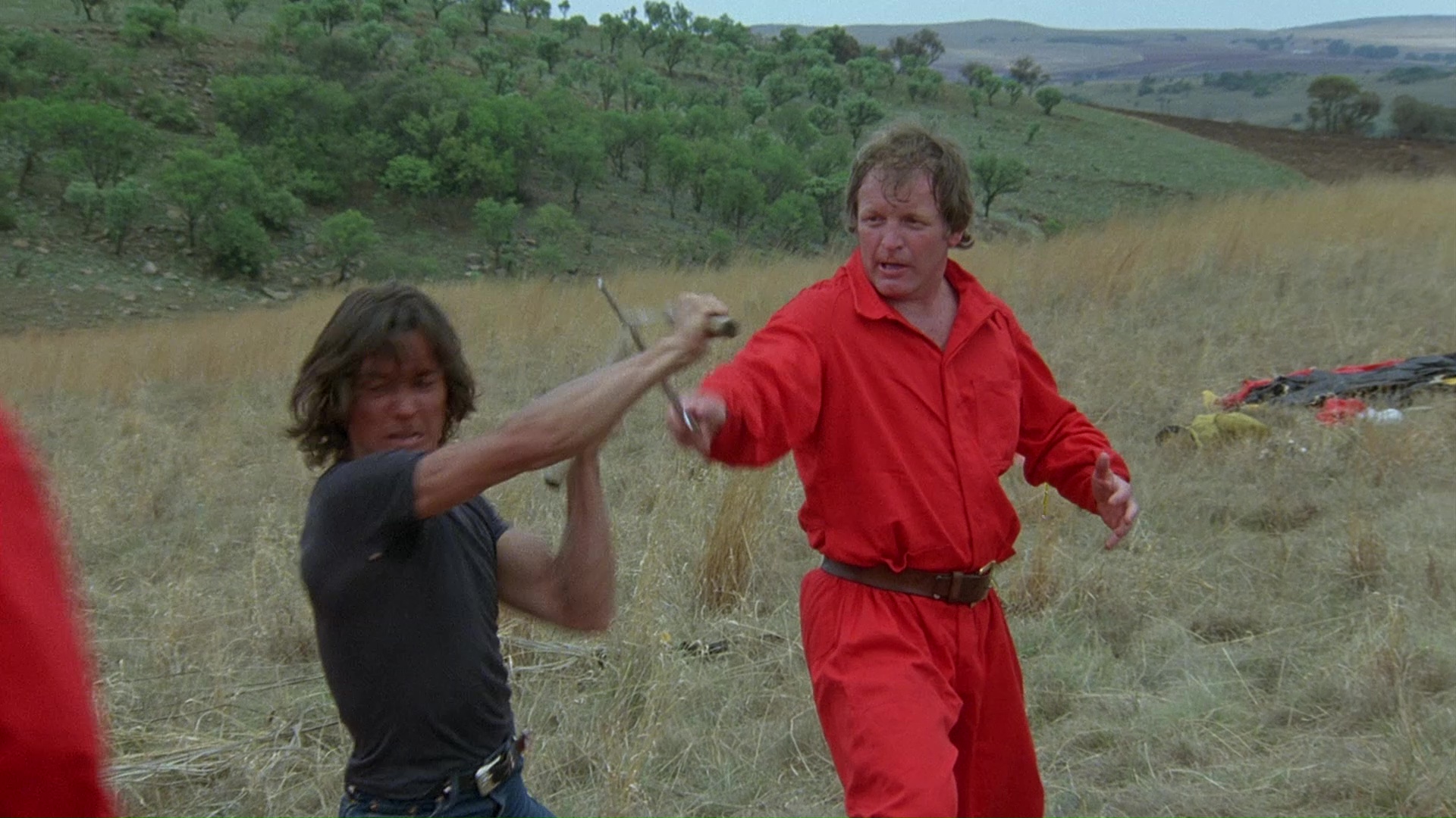 than anyone's seen it outside of a movie theater. The colors are now back to their original early '80s intensity, the film elements are in great shape, and there's really nothing to complain about at all unless you have an aversion to phony facial hair. The mono audio sounds nice and clean as well, and there's even an isolated music track for good measure. As for extras, first up you get a 42-minute phone interview with Ryan (which plays commentary-style with the feature) in which he speaks with his natural South African accent about working on both films, his relationships with Kriel and Kantor, the ins and outs of shooting in his country, and the challenges of intensely physical action sequences. Then the aforementioned Crowther appears for an on-camera interview (23m45s) in which he chats about pitching the film, the WGA's objection to his screen credit, and some of his other films like The Evil that Men Do. Two favorite sound bites: "Nobody really wants character development" and "Go look for subtext... it's a parable for everything that's wrong with the world today, especially vicious dictators." Finally the disc closes out with the original trailer and bonus ones for Puppet on a Chain, The Last Grenade, Joysticks, Death Ship, Mortuary, and Malibu High. In 2017, Scorpion gave the film its inevitable Blu-ray upgrade, with a fresh scan that looks even better with extremely sharp detail and fresh colors; the DTS-HD MA English mono track also sounds clean and clear. The audio interview, featurette, trailer, and isolated music track are carried over here, along with bonus trailers for Force: Five, The Salamander, Barbarosa, and Firepower.SCORPION RELEASING BLU-RAY