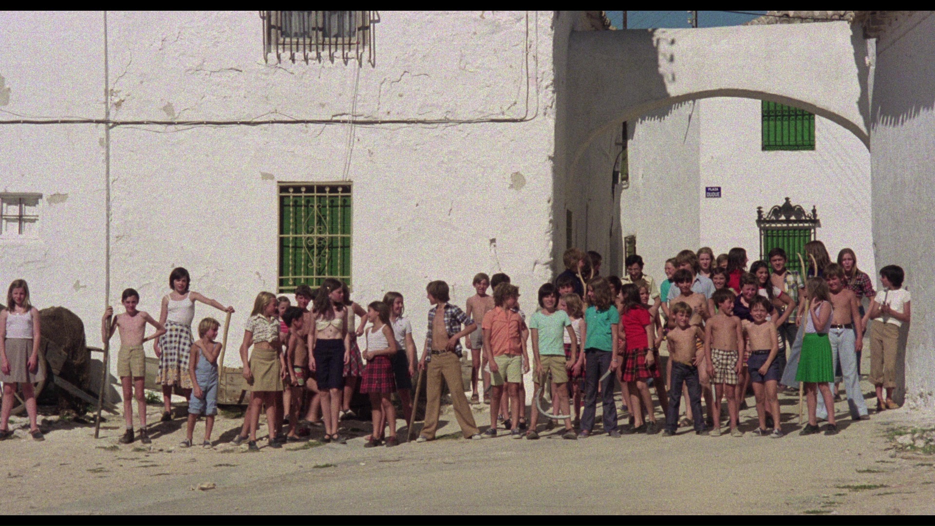 against children in modern times, setting up some context for the narrative to come. It also features quite a bit of additional dialogue scattered around at the beginning detailing some of the local color during the festivities. Interestingly the U.S. version never earned a standalone home video release of any kind, but the uncut version debuted on English-friendly DVD in 2007 from Dark Sky with a fine transfer and two notable extras:a “Who Can Shoot A Child” featurette (16m7s) with cinematographer José Luis Alcaine and a “Child Director” interview (9m13s) with Serrador, plus a still gallery. The Serrador one is fascinating as he explains the disconnect between the film and the "based on" novel listed in the credits, which explained the cause for the children's behavior due to a pollen contagion. The Alcaine one is definitely worthwhile as well, particularly concerning the intended sunny look and the carefully chosen island location. Subsequent DVDs around the world have used the same transfer, while a Spanish Blu-ray (with a mostly English audio option but not English friendly-- more on that below) turned up from Divisa in 2016.