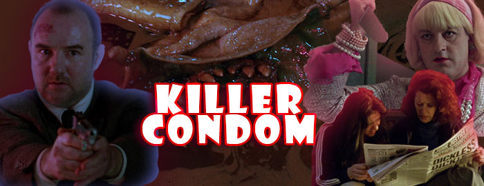 Teacher, The Seventh Continent) headlined a satirical German monster spoof about a homicidal prophylactic, co-produced by Ascot Elite head and sexploitation maven Erwin C. Dietrch who gave us such Jess Franco favorites as Doriana Gray, Barbed Wire Dolls, and Blue Rita. Oh, and the special effects including giant, rampaging condom with fangs were the handiwork of the legendary Jörg Buttgereit, better known for directing Nekromantik and Der Todesking (and consulting here with none other than H.R. Giger). In a particularly surreal move, the German-language film is set on the mean streets of New York with frequent references to the boroughs, making this a lunatic descendant of sorts from the numerous Edgar Wallace Krimis set in England. Based on comic books by co-writer Ralf König, Killer Condom (originally Kondom des Grauens) has the kind of title that jumps off the video shelf; it's also quite a bit smarter and edgier than you might expect, taking on the perceptions of sexuality that were prevalent around the world after a decade-plus of dealing with the AIDS crisis and an awful lot of repression.