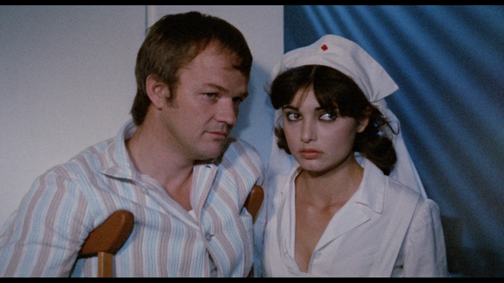 amount of what looks like normal film grain, but some scenes have an oddly processed veneer as well that teeters over into that odd digital watercolor effect. On the audio front as we finally, finally have the complete original Italian track (in DTS-HD mono like the English one), which is vastly preferable in every respect to the English dub. Several of the performers are speaking Italian in their original voices (including the always awesome Alida Valli in what amounts to an extended cameo), and the dialogue is far more polished and involving by comparison. There are also many, many more extra lines in the Italian version, too, when characters are speaking offscreen, and thankfully English subtitles are available both as SDH for the English dub and a straight translation from the Italian one. Additional subtitles are also presented in French and Spanish if you want to learn how to say a lot of bilingual Catholic jargon.