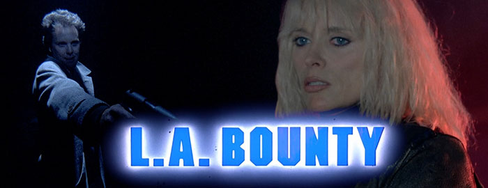 buxom star in numerous drive-in films, Sybil Danning started to reinvent herself as an action icon both in films (like 1984's Jungle Warriors and The Panther Squad) and as the host of the popular Sybil Danning's Adventure Video line of VHS releases for U.S.A. Home Video. Danning managed to channel that action icon status into her last theatrical starring vehicle to date, L.A. Bounty, a colorful and enjoyable feast of bullets, screeching tires, and music video-friendly lighting pairing her up with a scenery-chomping Wings Hauser. Danning also devised the story and co-produced the film, which was directed by onetime Earl Owensby collaborator Worth Keeter who also brought you the 3-D antics of Rottweiler and Tales of the Third Dimension as well as the pulpy pairing of The Order of the Black Eagle and Unmasking the Idol.