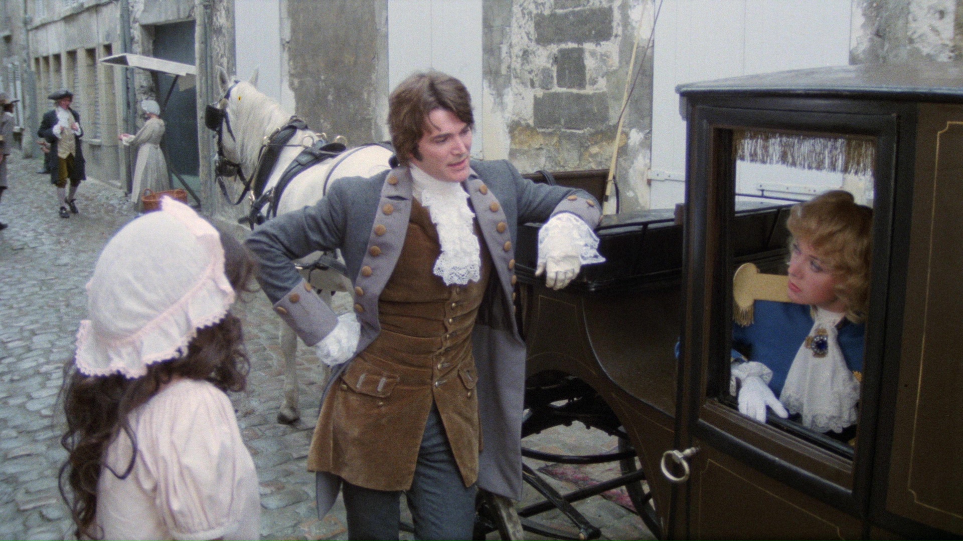 job in the lead despite some stilted editing and a clunkier handling of English than Demy's earlier The Pied Piper. (On top of that, everyone speaks with British accents except for Bloody Friday's ill-fated Christine Böhm, adopting a French accent to play Marie Antoinette.) It's plenty of fun spotting odd cast members like Martin Potter (Satan's Slave), Sue Lloyd (The Stud), former Hammer eye candy and high society fixture Anouska Hempel, a boyish and fleetingly glimpsed Lambert Wilson, and a very young Patsy Kensit as the juvenile Oscar. That said, the sexual confusion of Demy's previous film carries over interestingly here in quite a few scenes, and the surprisingly tragic finale represents a continuing trend on Demy's part towards downbeat (or at least heavily bittersweet) story resolutions. It's probably safe to say that without the gender tweaking here and greater emphasis on political conflict and tragedy, we wouldn't have had his later efforts Un chambre en ville and Parking.