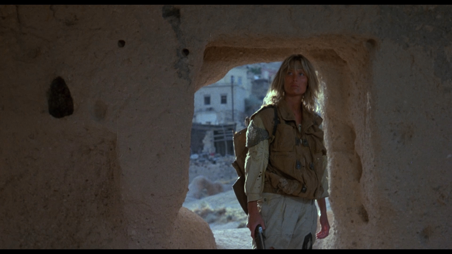 detail levels are satisfying throughout. That transfer was the source for an MOD DVD release in 2015, but you're far better off going with the 2019 Blu-ray from Scorpion Releasing, sold via Ronin Flix and Diabolik. Anyone who saw this on MGM HD will note that the channel's tendency to scrub out grain and some detail is nowhere to be found here with natural film grain and a few organic little flecks popping up here and there. The DTS-HD MA English mono audio is also satisfying, and optional English SDH subtitles are provided. A new interview with Rennard (12m1s), who must have an aging portrait of herself stuck in an attic somewhere, is a fine overview of her career and an exploration of why she took this film for its strong, independent female lead character. Apparently those motorcycles were just as cumbersome to operate as they look on screen, too, and there was a downside to shooting in caves she didn't realize right away. The theatrical trailer is included along with bonus ones for P.O.W.: The Escape, Iron Warrior, Deep Space, Bucktown, and Opposing Force.