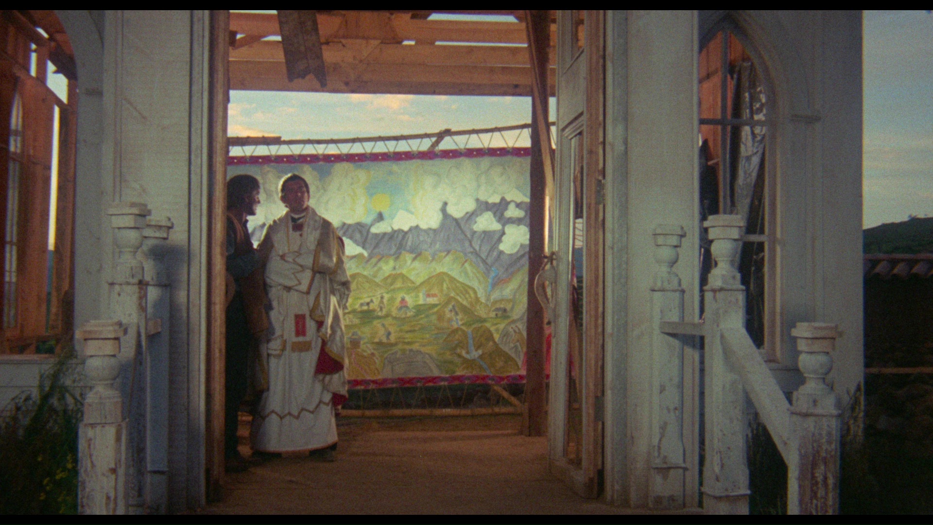 having a beginning, a middle, and an end, not necessarily in that order), the 1971 theatrical trailer, the 2018 reissue trailer, a weirdly jaunty 1971 product reel (1m1s), a restoration demo (2m59s), and Hopper's 1971 appearance on The Dick Cavett Show (6m36s) chatting about coming back from Peru with 40 hours of film to pare down. More substantially, the very enjoyable "Scene Missing" (47m17s) by Alex Cox takes an enthusiastic look at the film's creation and reception via interviews with producer Paul Lewis, screenwriter Stewart Stern, Milian, Henry Jaglom, set builder Philip Thomas, hilariously candid "former henchwoman" Tod Davies, and others. They mostly chat about the making of the film, with Stern's anecdote about a snorkel and Hopper's pot smoking being the highlight along with a great dissection of what may be the film's greatest shot and Milian's tearful recollection of a turning point in the portrayal of his character. Hopper himself gets profiled in Paul Joyce's "Some Kind of Genius" (29m14s), an interview about his creative process from the two performances that defined his acting (courtesy of Montgomery Clift and Marlon Brando) through his early days opposite James Dean to his watershed collaboration with Peter Fonda and even a glance at his switch to political conservatism. Finally, "Postcard from Peru" (31m9s) features the reverse perspectives of the Peruvian locals who were around for the production (including the mayor at the time), chatting about the construction of western sets in the area and the influx of artists and technicians as well as their perceptions of Milian's priest character (especially his kissing). An extensive insert booklet features new liner notes by Jessica Hundley and reminiscences by Adams, film programmer Mike Plante, and L.M. Kit Carson.
