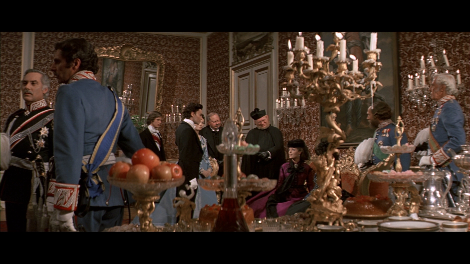 Fortunately that English version – or what exists of it – can finally be heard in the 2017 Arrow Academy dual-format release, which reinstates it for both the film’s longest theatrical edition and the five-part television version created for Italian TV (and which previously appeared on DVD from Kinowelt in Germany). It makes a huge difference hearing actors like Trevor Howard, John Moulder-Brown (The House That Screamed), Romy Schneider, and Berger himself finally in synch and speaking with their own voices, and for the fragments that were never synched up with the English track, Italian audio with English subtitles has been dropped in (a la Deep Red). Standard English SDH subs are offered as well, and the usual Italian track can be played with optional English subtitles. Previous home video releases before the 2016 German (non-subtitled) Blu-ray were a pretty sorry bunch, including unwatchable flat letterboxed transfers in the U.S. and U.K., but the new HD presentation is beautiful and finally restores the lustrous colors you normally associate with Visconti films. Black levels also look nice and rich, with fine detail and film grain looking more than satisfactory.