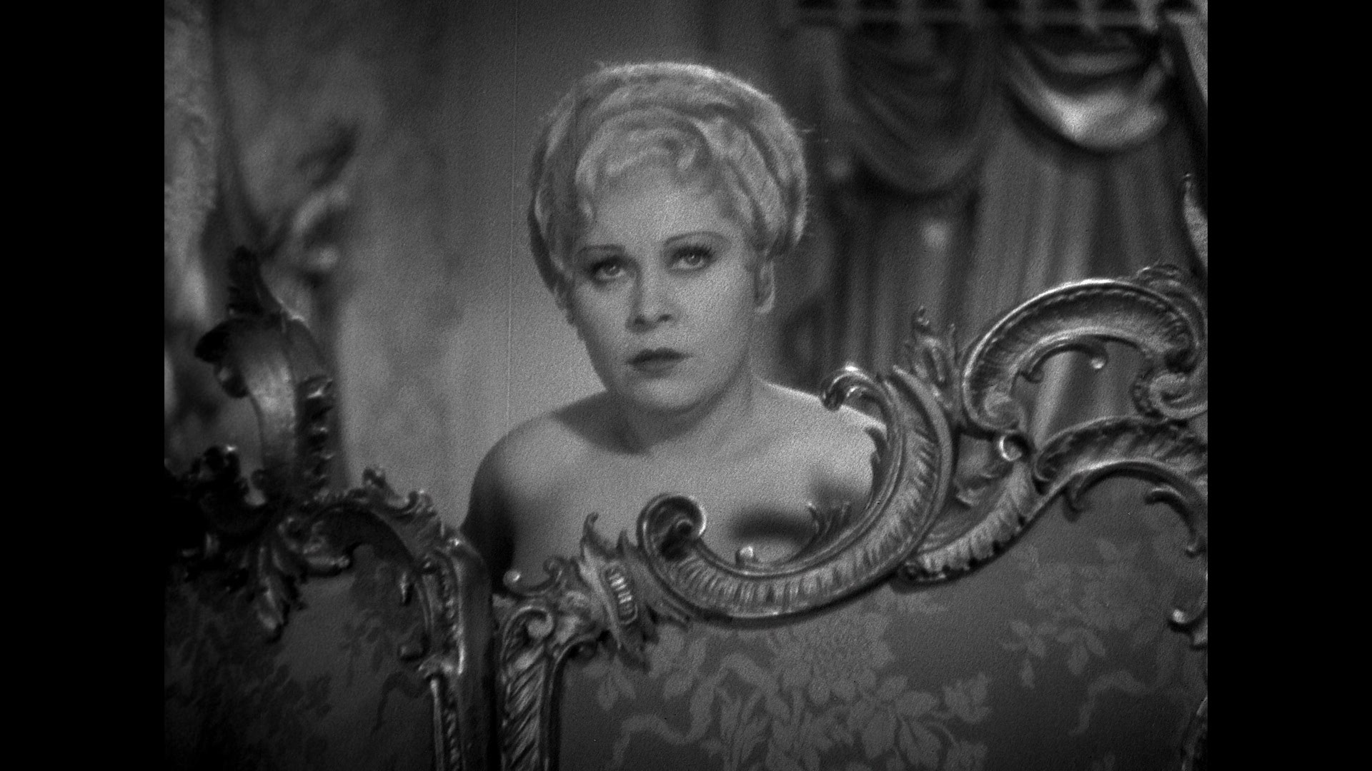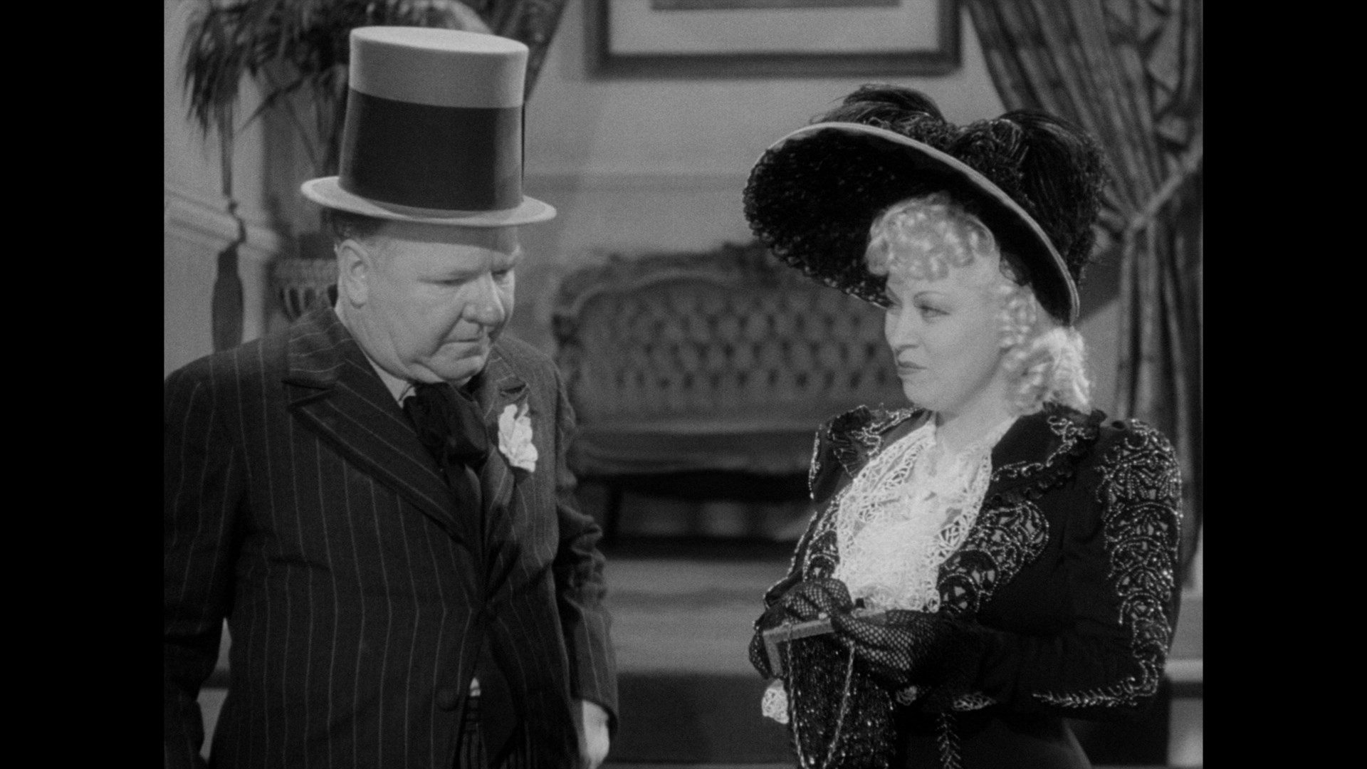 up for the first of two times with a young Cary Grant (hot off his turn opposite Marlene Dietrich in Blonde Venus). Adapted from her scandalous play Diamond Lil, the film changes her name to Lady Lou, a saloon singer in turn of the century New York City. Little does she know that her place of employment is a hotbed of crime and deceit thanks to her boss, Gus (Beery), and miscreants like her ex-boyfriend, Chick Clark (Moore). Meanwhile a fed named Cummings (Grant) has set himself up as the head of a mission next door to keep an eye on the place and crack down when the time is right, but will Lou get caught up in the middle? Complete with musical numbers and double entrendres galore, She Done Him Wrong mostly uses its threadbare plot as a vehicle for West to strut her stuff. She actually has pretty solid charisma with Grant, but he's far from the razor-sharp, suave megastar he'd become in just a few years. This one also turned up from Kino Lorber (with separate commentaries by Kat Ellinger and David Del Valle, plus a Robert Osborne intro and "She Done Him Right' cartoon); it looks the same here with a 4K scan made in 2017, which probably does the best it can with the surviving elements. It isn't the most pristine film in the set but looks fine given its age and the relative condition of most early Paramount properties. Here you get a new commentary by Pamela Hutchinson, who does a deft job of laying out the history behind the source play, the tangling with the Production Code, West's sudden rise to stardom, and the depiction of womanhood she projected that remains striking today. Also included is the audio of a West appearance at UCLA in 1971 speaking with (a very out of breath) Bob Elias, lasting for 25m23s as she answers questions about her career. It's a little tough to follow since there's some obvious physical comedy going on that we can't see, but it's great to hear her in fine spirits talking to the students. She also touches on her supposed discovery of Cary Grant as well as her acrimonious relationship with W.C. Fields, but more on that later. After that you get the Night After Night trailer, galleries for both films (19 and 24 images respectively), the 1933 She Done Him Right cartoon (7m54s) with Pooch the Pup, and another cartoon, 1933's The Merry Old Soul (8m2s), featuring Oswald the Rabbit and a host of Hollywood caricatures including West.