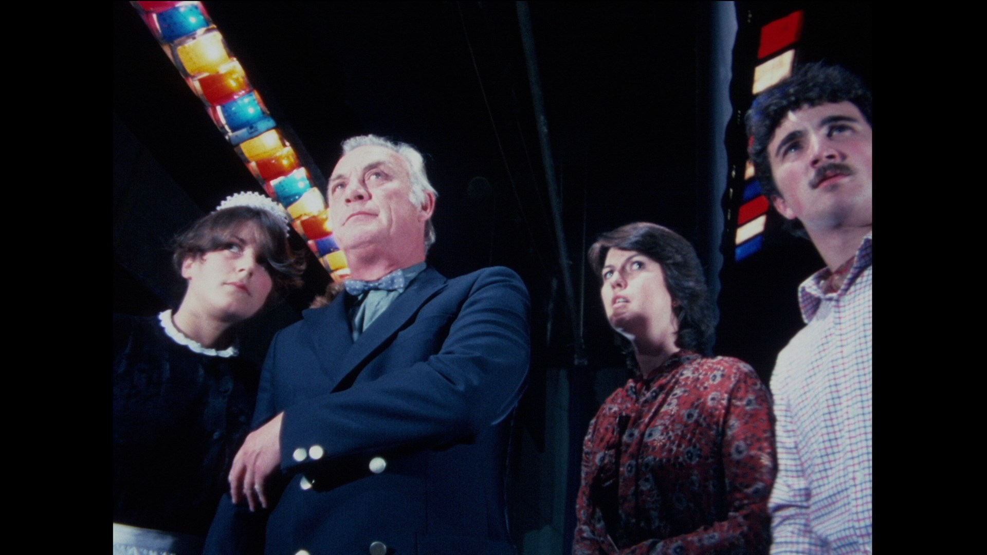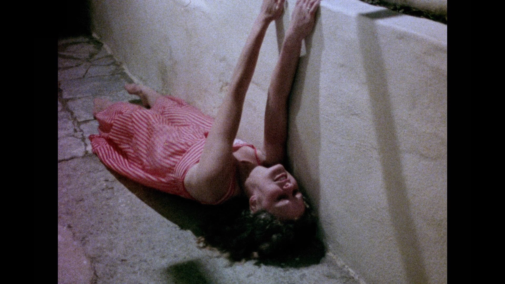 off Murphy's eye for Greek isle scenery again. Then we move to another short feature, 1981's Death in the Family (54m51s), which actually does feel a bit like a more subdued Milligan film and got a U.K. VHS release back in the day from Neon. Oliver (Hall) welcomes several of his relatives to the family villa for a reunion including sister Debbie (Caroline Aylward), with whom he has an incestuous relationship, to meet the new stepmother, Shirley (Aston). It's been five years since the death of Oliver's mom in a fiery car accident, and he's still working through major trauma issues while his dad Max works on building a new marina. Soon hidden agendas rise to the surface as Oliver and Debbie's dark side begins to take over. Though it starts off slow, this one is pure Murphy with its double- and triple-crossing characters, languid Greek island locale, and utterly cuckoo climax that's best experienced unspoiled. The 2K 16mm restoration (with a couple of very fleeting VHS inserts) is framed at 1.33:1 and looks solid while preserving the scrappy nature of the original film.