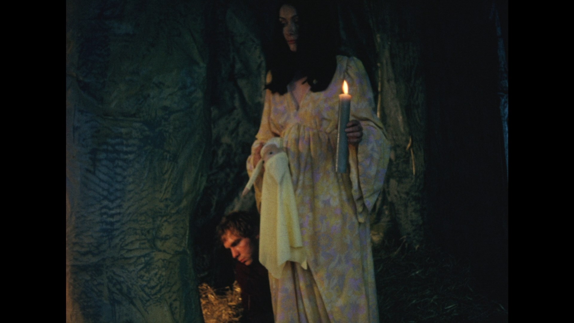 in two versions: the original cut (108m11s) in a 2K restoration from film with occasional SD inserts for missing material, or a revised video version (101m29s) with a different score. The gist is the same here with the usual torchlight and dark, moody lighting evoking the Dark Ages on a budget, here restructured a bit with Tristan (Scott Wright) introducing his story as he fears he's approaching death. The air of tragic, windswept adulterous romance is still potent here with Murphy showing a fine theatrical flair for costumes and masks, making for an interesting progression in what ultimately amounts to a trilogy of variations on a theme. Extras include a very cozy Horror-on-Sea festival interview with Murphy (64m13s) about his career complete with glasses of wine and Christmas decor, behind the scenes of The Rite of Spring (40m20s) including lots of scene-stealing sheep, alternative titles and credits for Tristan, trailers for both films, an image gallery for both films, and a Tristan script gallery.