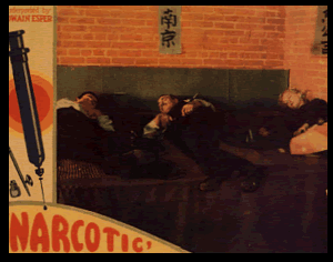 new habit, especially when he decides to peddle opium as a new medical wonder to Americans. Eventually she talks him into going into rehab, where the doctors treat the poor soul by giving him... heroin! Yep, it's a real slippery slope from there, as Davis plunges into the depths of a real "dope party" at which participants dress up in evening wear, shoot up, smoke pot, and tell awful jokes. Oh, the horror! Anyone could predict where the good doctor winds up next -- the carnival sideshow, of course. When that venue doesn't work out, it's time for Davis to go huddle up in a cheap hotel room with