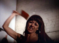 least on a surface level, thanks to its heavy helpings of psychedelia and go go dance numbers, aided in no small amount by imaginative, colorful cinematography by Laszlo Kovacs, who went on to fame next year for his hit and run photography on Easy Rider (and which also includes a memorable LSD trip scene, by the way). The plot, such as it is, concerns a troubled topless dancer named Lila (skin flick veteran Susan Stewart), whose mind is being eaten away by bad acid trips. After she gets off work, Lila takes her gentleman of the evening to a spooky warehouse, where they make passionate love capped off by a handy screwdriver in the back and a round with Lila's meat cleaver. During this drug induced butchery, Lila can only shout "Leave me alone!" over and over, followed by a period of amnesia. Led by Sergeant Collins (Steve Vincent), the police begin to close in on our murderous stripper, particularly after she offs prying shrink Stuart Lancaster (a familiar face to Russ Meyer fans).