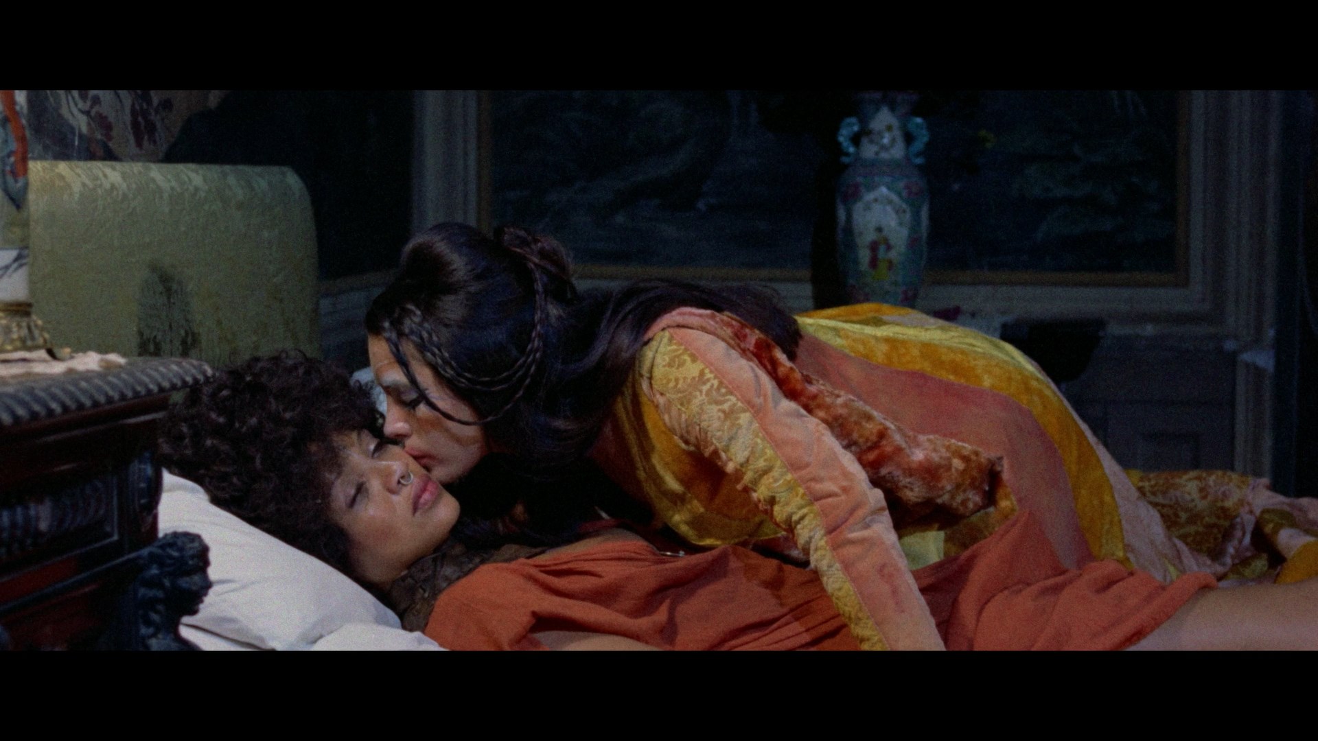 A French Blu-ray from Le Chat Qui Fume popped up for sale briefly but was gone before most folks even knew it existed, so the Vinegar Syndrome Blu-ray will probably be the first time at bat for most viewers. The new 4K scan looks superb here, retaining the naturally grainy look along with the ultra vibrant, sun-drenched golden look of the film. Color timing is pretty close to the earlier presentation apart from tamping down a bit on the heavy blues that popped up during the night scenes. The usual Italian DTS-HD MA 2.0 track is here and sounds excellent with optional translated English subtitles, but a big incentive to upgrade here is the ultra-rare English-language track (with optional English SDH subtitles). The film was actually shot in English with the actors looped later (as usual for the time), and it's a far more comfortable viewing experience that way. A new interview with Lomi, "Sex, Voodoo and Dictatorship" (32m57s), goes into his desire to shoot his own film in Haiti, his interactions with President Duvalier, his rapport with the Brazilian-born Steffen, the rest of the casting process, and thoughts on his co-director. A video essay by Nisbet (18m9s) examines the film as a cross-pollination with the mondo movie as well as a curio in the shadow of Goodbye Uncle Tom. Also included are a reel of outtakes (2m40s), the English Peacock Place main and end titles, and the English and Italian trailers.