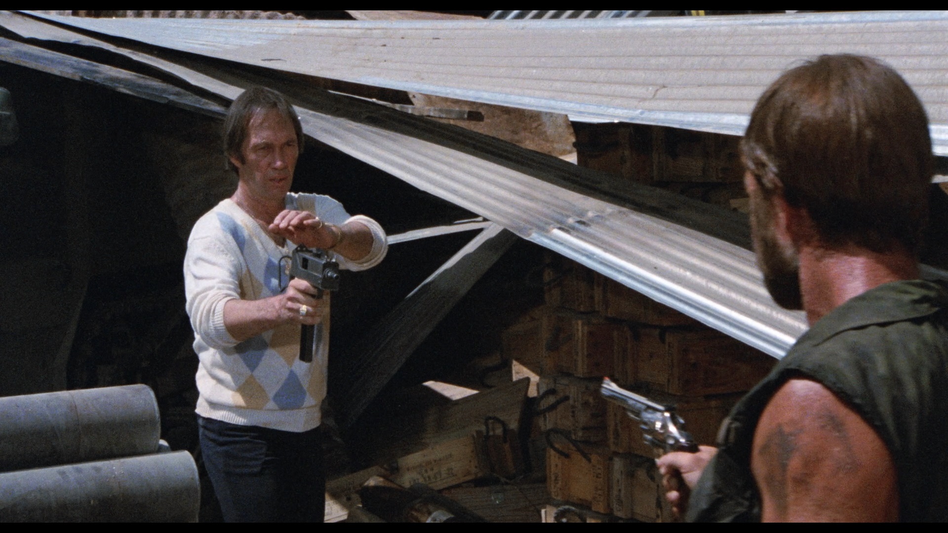 DTS-HD MA English 2.0 mono track is also in solid shape and accurately reflects the original mix, with optional English SDH subtitles provided. A new audio commentary with Carver, actors Robert Beltran and L.Q. Jones, and producer Yoram Ben-Ami is moderated by C. Courtney Joyner, and they keep things fast and informative here as they cover plenty of topics including the score (recorded at Ennio Morricone's church), convincing Norris to go grungy and grow a beard, the apprehension of using Carradine due to his Kung Fu association, the sweet and shy disposition of wolves, the evolving nature of action stars at the time and the near future, the novelty of seeing Norris as a dad, and much more. For some reason only Ben-Ami is listed as a participant on the menu screen, but rest assured everybody is present. Also included are separate interviews with Beltran (9m46s), Jones (10m15s), Leon Isaac Kennedy (11m47s), and Ben-Ami (7m27s), who all concur that it was an extremely pleasant, efficient, and drama-free shoot; Kennedy gets some of the best anecdotes, including how he and Norris would swap stories about their idols, Muhammad Ali and Bruce Lee, during their morning workouts. The theatrical trailer is also included. Reviewed on June 18, 2020