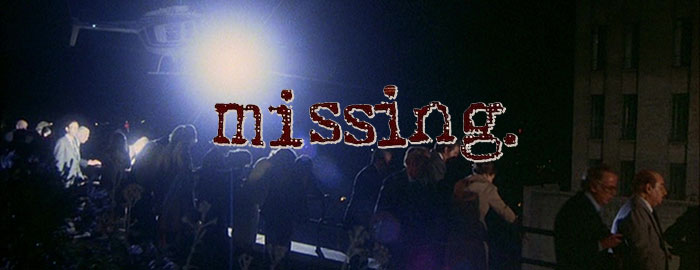 successful film, the 1969 political thriller Z, Greek-born flmmaker Costa-Gavras spent the following decade tackling any number of sensitive topics and prodding western sensibilities about governmental abuse. However, it was only with 1982’s Missing that he really hit a raw nerve again and scored a major success, earning a publicized response from the U.S. State Department just before the film’s release, nabbing multiple Oscar nominations and winning one for its screenplay, and even falling afoul of a lawsuit that kept it out of circulation for a few years. Both a gripping thriller in its own right and a scathing condemnation of the Pinochet regime in Chile, it’s a film that continues to chill and resonate all too effectively.