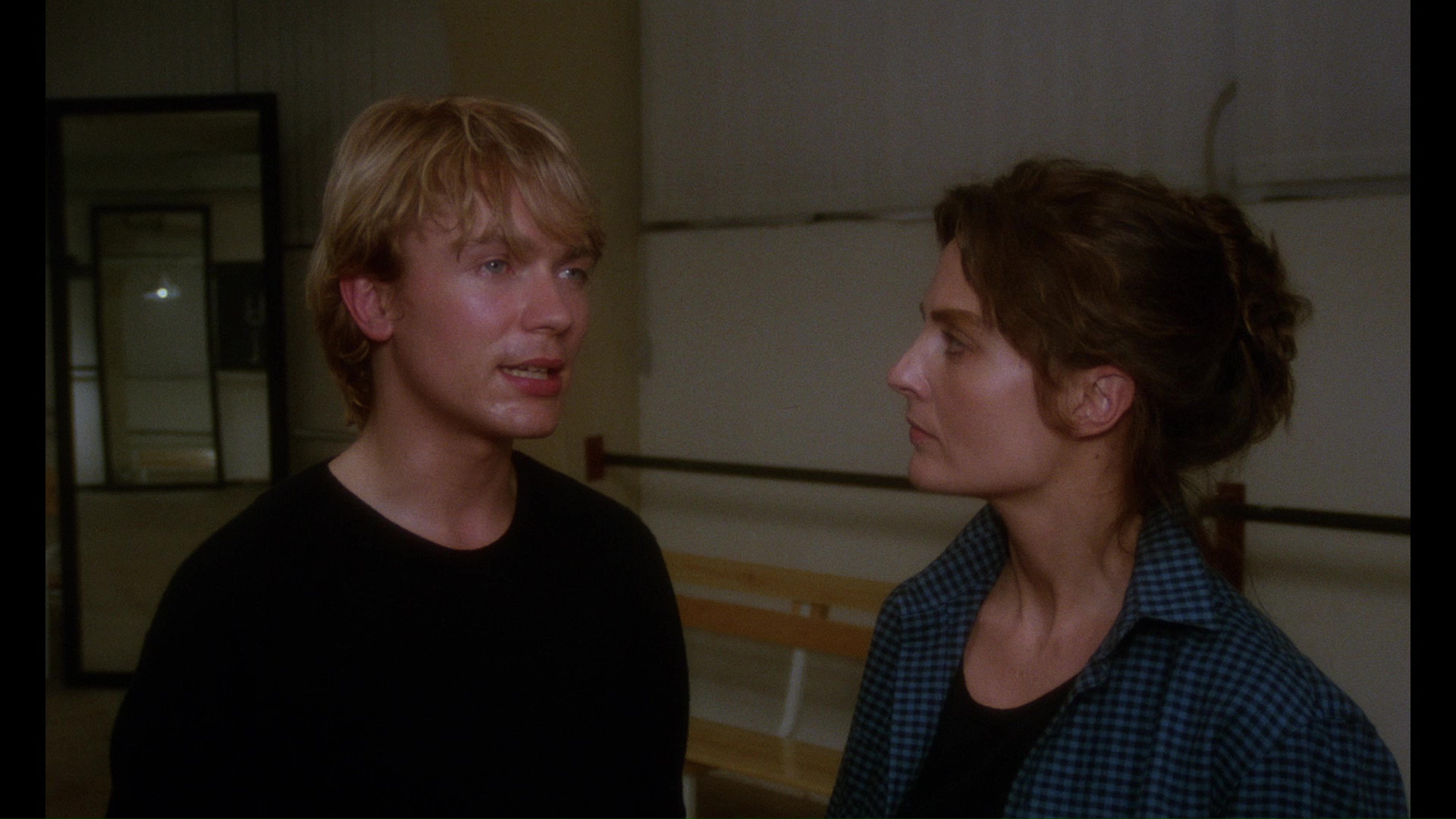 original camera negative with HDR10-compatible Dolby Vision on the former option. The big question here is how the framing would compare, and it's great news all around as it goes with the roomier 1.66:1 framing but adds a very significant amount of visual info compared to all prior versions. The added breathing room helps substantially and looks nicely framed throughout, especially since you can finally see the dancers' feet in several shots that were cropped too high before. The UHD really sparkles with exceptionally deep blacks that make those primary colors pop like crazy, and the slow strobing effects work better than ever here, too. Audio options include the usual DTS-HD MA 2.0 stereo English track and 1.0 Italian mono with newly translated English subtitles, plus the Howarth commentary ported over here.