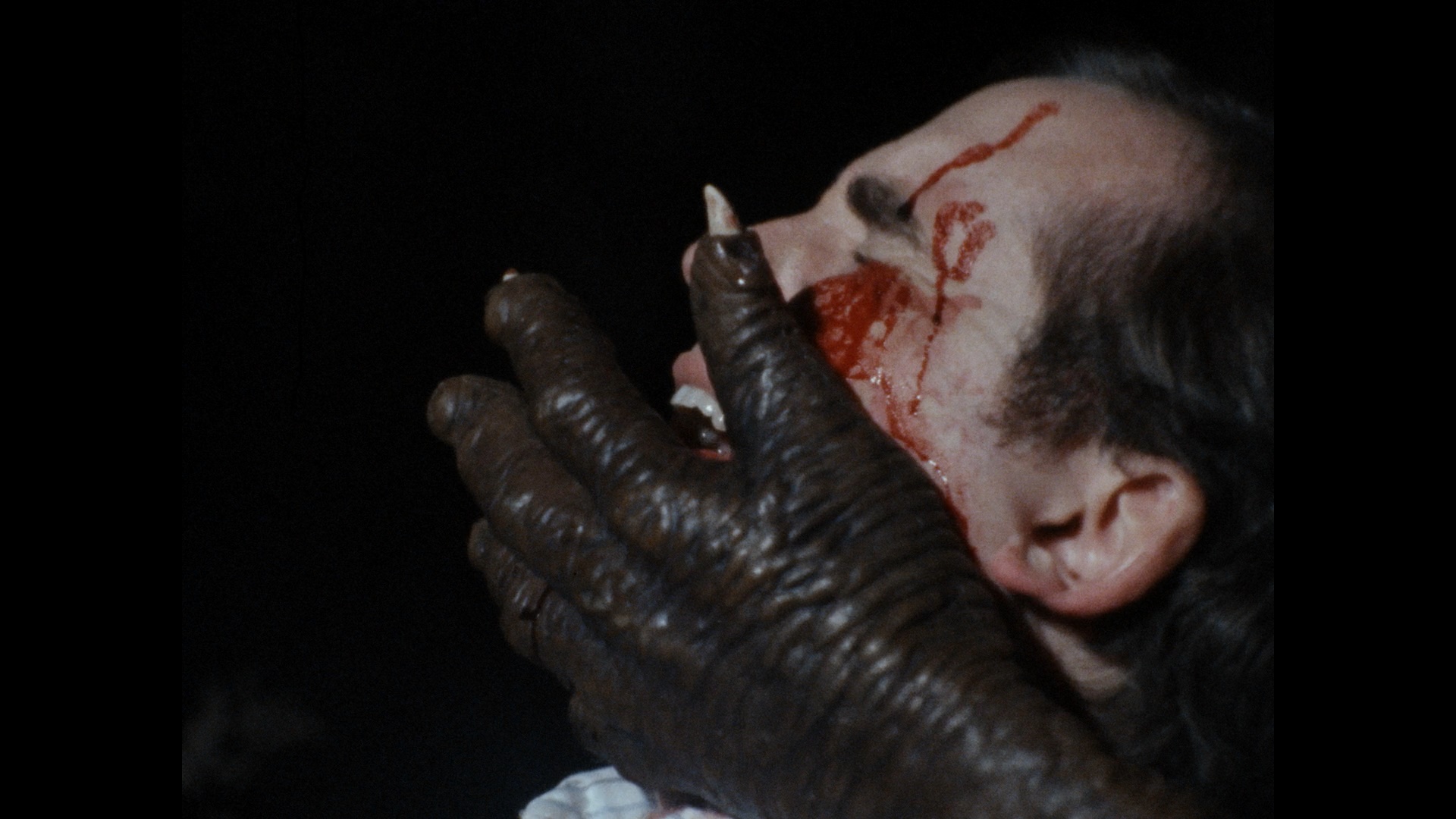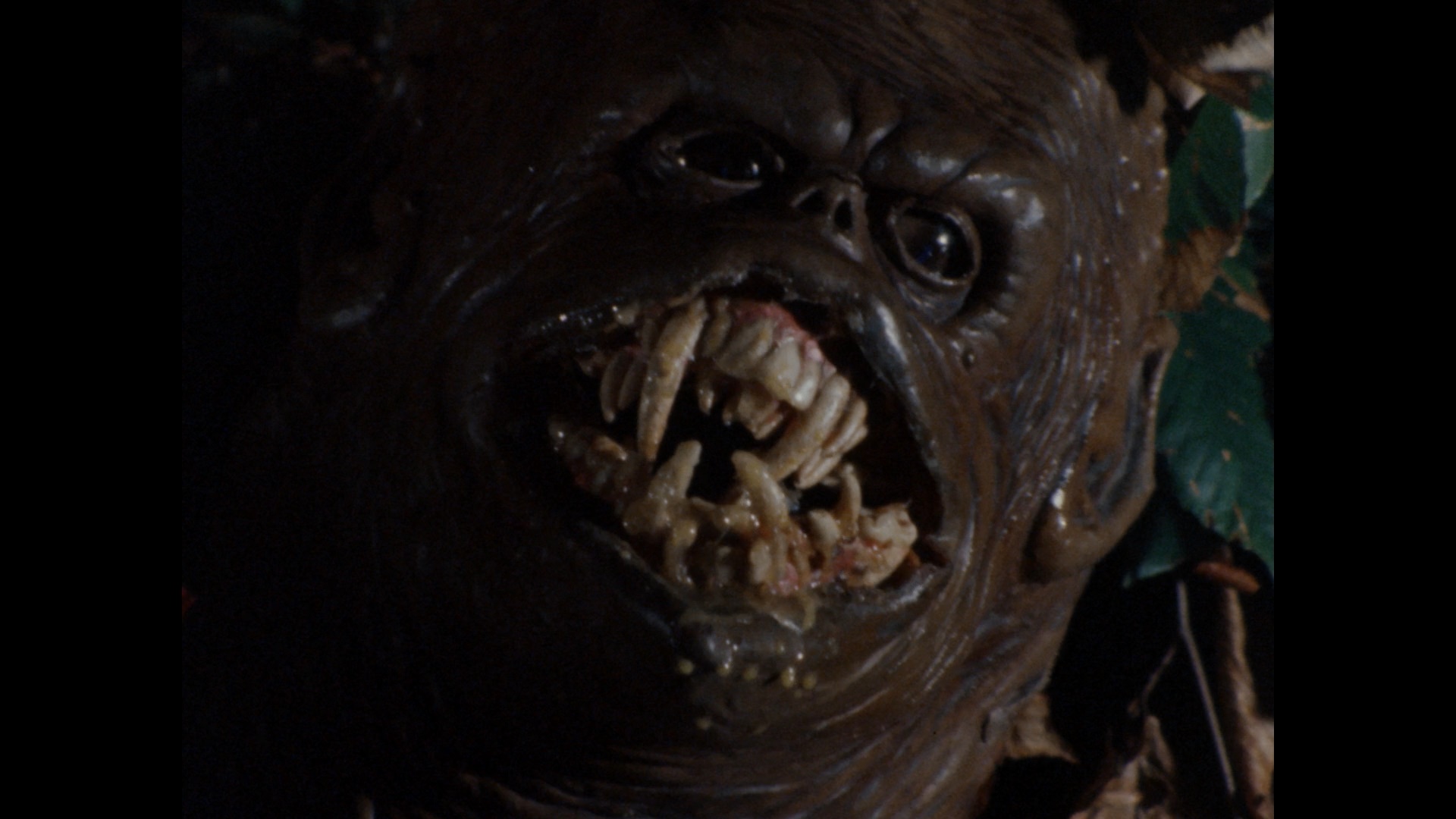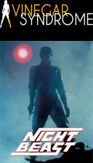 Initially released on VHS by Paragon, Nightbeast made its DVD bow in 2004 from Troma (who snagged the rights in the early '90s) in a fairly stacked edition featuring an audio commentary with Dohler and actor George Stover, a reel of outtakes and bloopers, and the usual Lloyd Kaufman filler material. In 2019, the film made its Blu-ray bow from Vinegar Syndrome as a dual-format release timed for the annual Halfway to Black Friday sale including a limited slipcover edition. The new 2K scan from the 16mm camera original looks fantastic and easily surpasses its video forebears in every way; blacks in particular are a lot richer and deeper here, while the frequent bursts of red blood and laser blasts look especially impressive. However, the drastic increase in resolution might not be such a welcome thing during the big sex scene, so brace yourself. The DTS-HD MA English mono track is also in much better shape with the droning electronic score sounding less sludgy than before here; optional English SDH subtitles are also included. The commentary (which is fine and sometimes really informative but ultimately a little flat) is ported over here along with the outtakes and bloopers (6m40s). "Night Beast Returns" (25m9s) edits together archival cast and crew interviews (with Dohler, Stover, Leifert, Abrams, Dohler's son Greg, and Kim Pfeiffer) about the origins of the film, the disastrous original attempt to make the film without Dohler directing, and the scaled-down result that ended up going in front of the cameras with a "student film" sensibility. Originally shot for the Dohler doc Blood, Boobs & Beast by John Kinhart, it's a great thumbnail account of the film's evolutionary process.