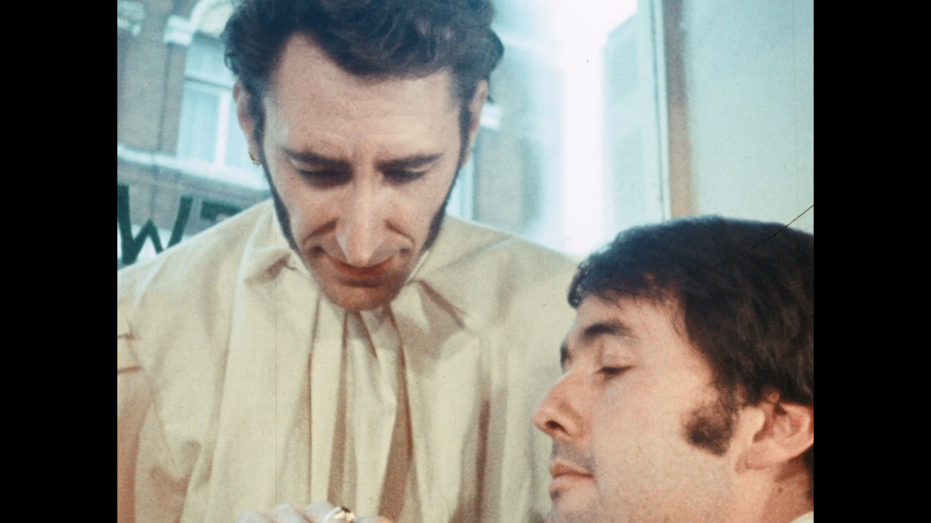 Paired up on the same disc is one of Milligan's best-known films, Bloodthirsty Butchers, his sex-and-violence take on the familiar story of Sweeney Todd. Shot in London for Mishkin and conceived under the title The Demons, it's a far cry from Stephen Sondheim as seemingly friendly barber Sweeney Todd (Miranda) slashes the throats of occasional patrons to pilfer their valuables. He gets rid of the bodies by providing them to baker and lover Mrs. Lovett (Hilary), who turns the corpses into meat pies. Aiding their murderous racket is slow-witted, hooker-loving Tobias (Kaler), while the innocent Johanna (Wood) and her lover, Jarvis (Cox), get caught in the dark spiral of capitalism and bloodshed.