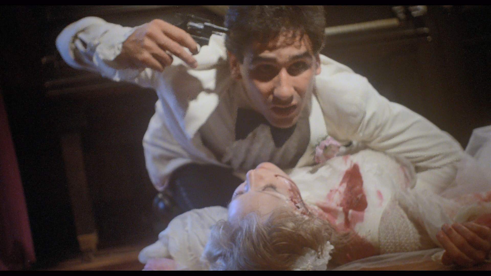 celebrating their wedding night with a nasty suicide pact via gunshot. Flash forward to their house's newest residents, Susan (Veeder) and Mark (Georges), who find their dream home turning into a nightmare with the specters of the dead couple wreaking deadly havoc on random visitors and even driving some to suicide. Telekinetic mayhem is also part of the deal with random implements getting flung through the air, and it soon becomes clear that these pesky poltergeists are determined to make history repeat itself.