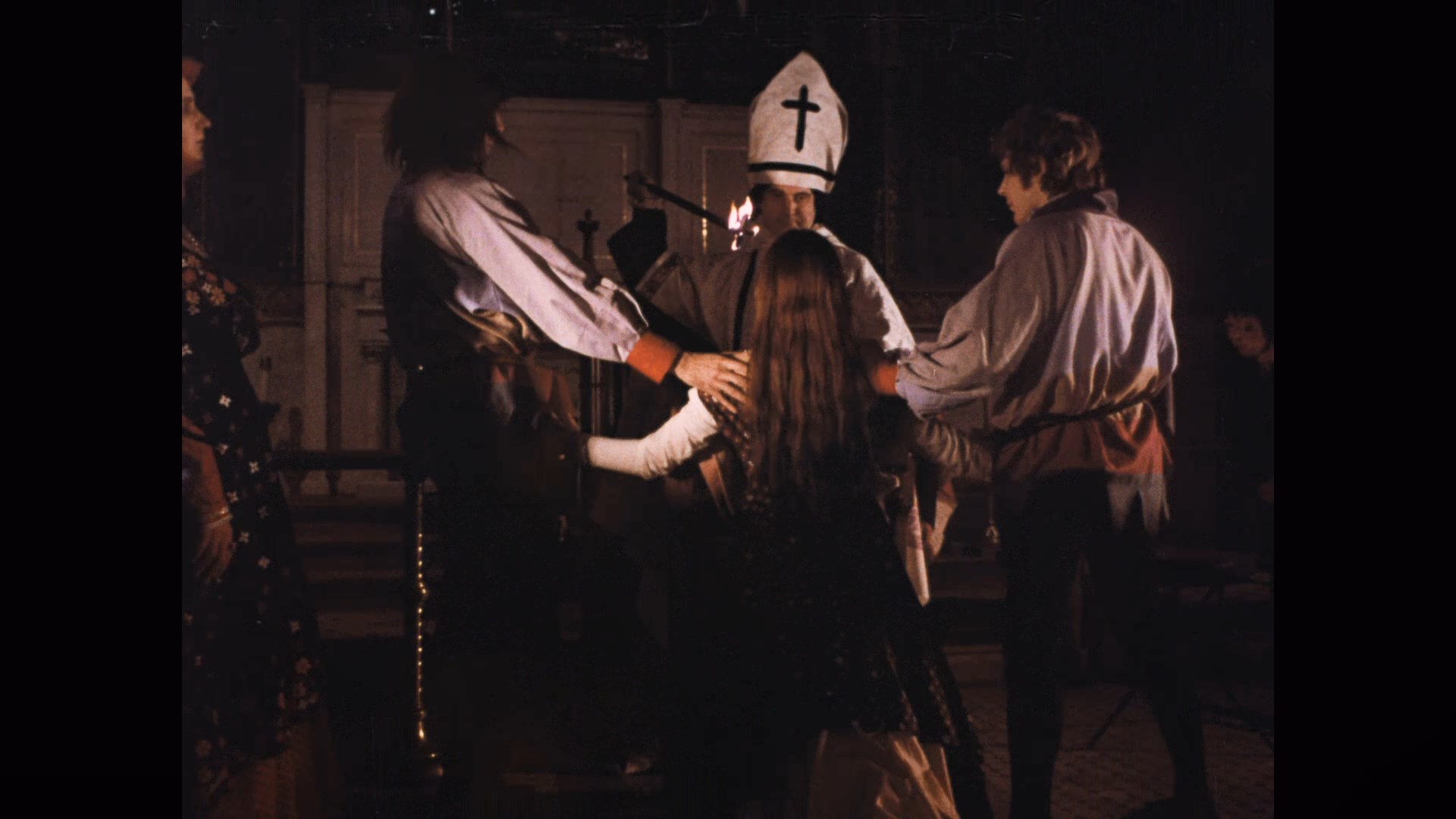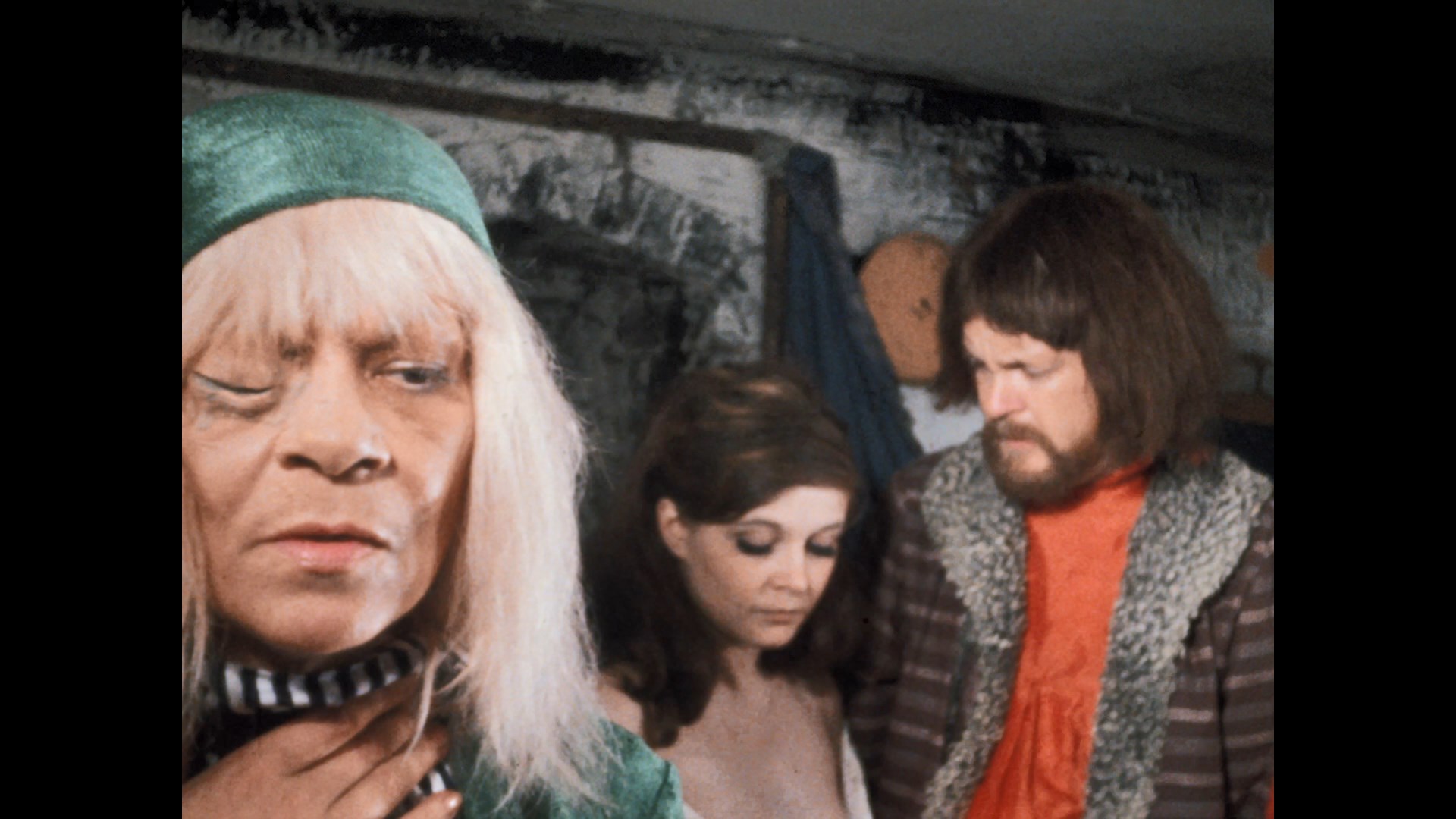 NYC cheapjack film distributor William Mishkin, both scissored to get an R rating and yet still comparatively popular in their compromised forms. First is Torture Dungeon, essentially Milligan's take on violent Shakespearean tragedies like Richard III but staged in the wilds of Staten Island with a bevy of colorful costumes and theatrical sets (as well as sparing but effective gore effects). Here Milligan vet Gerald Jacuzzo, a.k.a. "Jerremy Brooks," gets to take center stage as the debauched Duke of Norwich and gets to spearhead tons of juicy, overripe dialogue in a cast of prime Milligan oddballs for a production originally shot in 1968 as Macabre (so it really predates the British period). Rogers gets an equally incredible role here as a wizened crone named Margaret who's privy to the Duke's hellish torture dungeon of the title and conceals a dreadful family secret, while Borske and another beloved repertory member, Neil Flanagan, get some plummy one-liners as well. (It's also one of the prime examples when you can hear Milligan fleetingly yell directions off camera, a charming quirk if you take it in the right spirit.) The plot's your usual deal about a would-be despot conspiring to murder his way to the throne, with his sister, Lady Jane (Dillon), even inflicted with the growing spawn of their incest. Stuck in the middle is skinny dipping, dress-popping peasant girl Heather (Cassidy), who has a boyfriend but turns into the Duke's pawn in an intricate game of family musical chairs. Along the way you also get a deeper look at the Duke's bedroom proclivities, which incorporate another of Milligan's