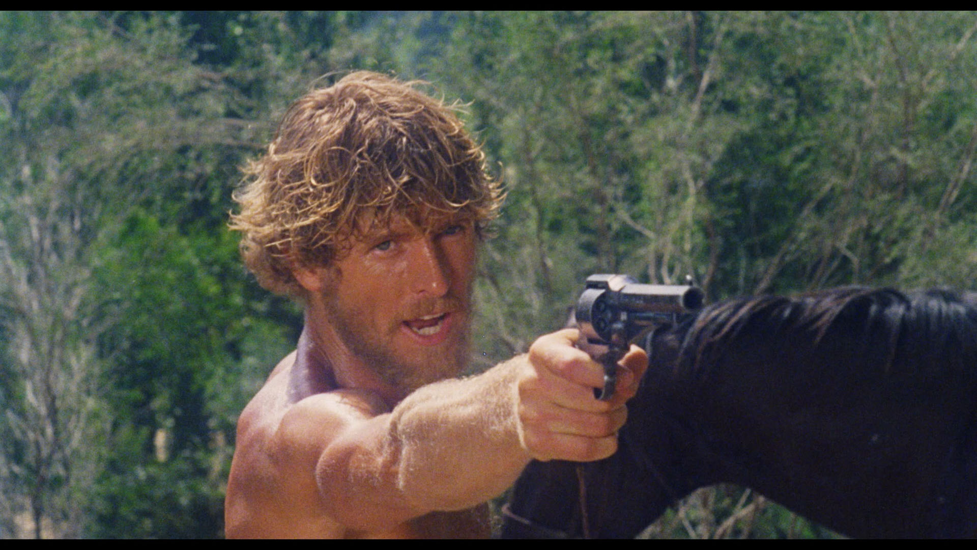 abroad (and even a VHS release from Paragon), it was often sold as an outright horror film but doesn't quite fit neatly into that box. The plot follows intrepid hired gun Cal Kincaid (Alex Cord, fresh off Chosen Survivors and The Dead Are Alive) as he investigates a dusty western town where a coachman has a nasty habit of turning his customers over to a pair of homicidal hostel owners (led by Judy) who enjoy killing off their guests. Lots of beautiful scenery, dining, and buck-naked running around pad out the story a bit too much for comfort, but it's certainly a unique attempt at a grisly oater (similar to the much stronger Cut-Throats Nine) and worth seeking out for the curious.