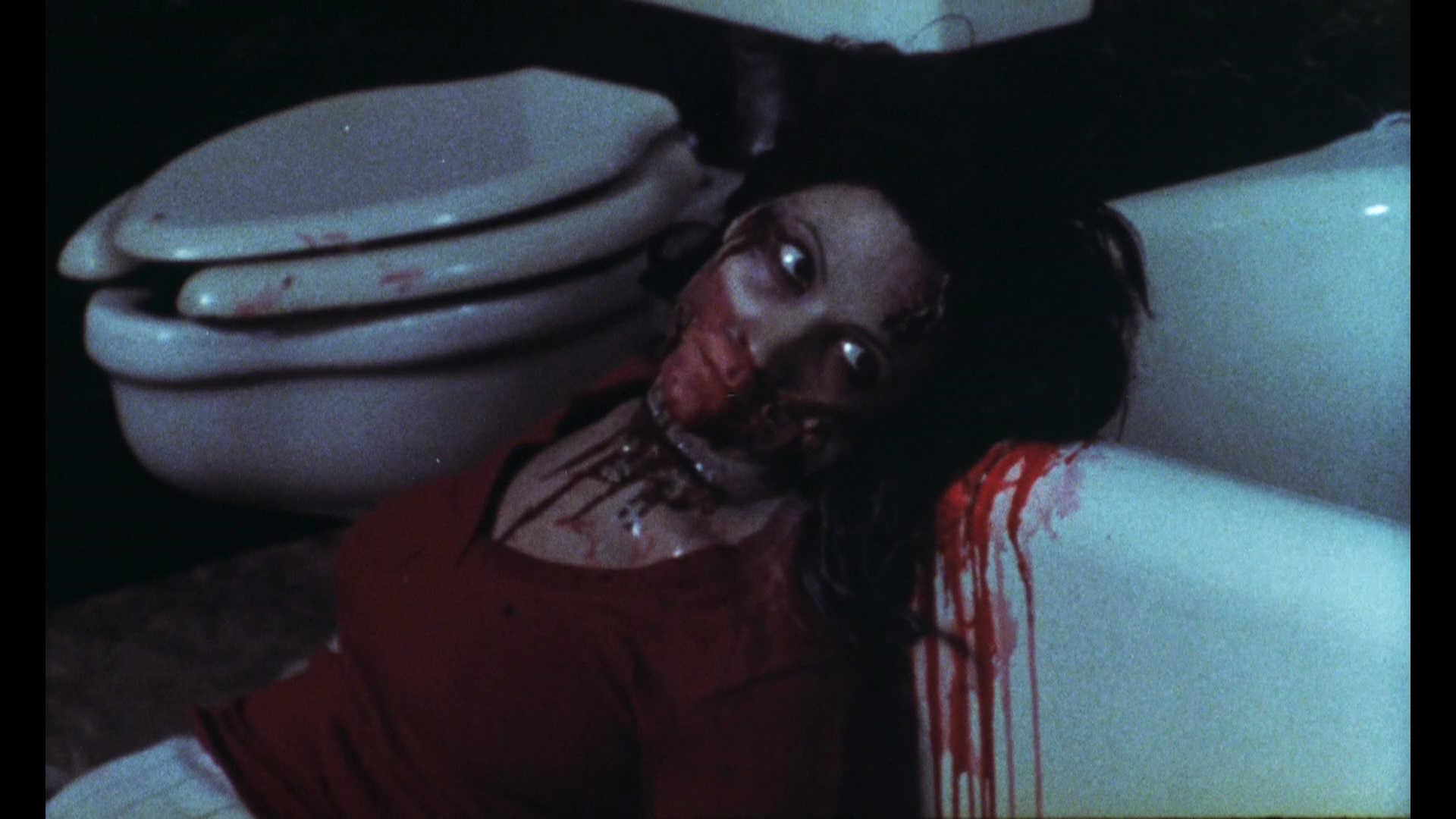 Now we jump forward to 2014 with something that had to be coming sooner or later, a Blu-ray edition from Code Red. The transfer is advertised as a brand new 2013 master, which means you're getting a nice HD upgrade of that superior third option. The boost in resolution helps, not surprisingly, with detail sharpening up and the plentiful shades of red benefiting from better color reproduction. This probably won't ever look like its slicker fellow slashers due to the nature of its production, but fans should be pleased with the results. Damage is very minimal here, with a fleeting green scratch in the opening scene and