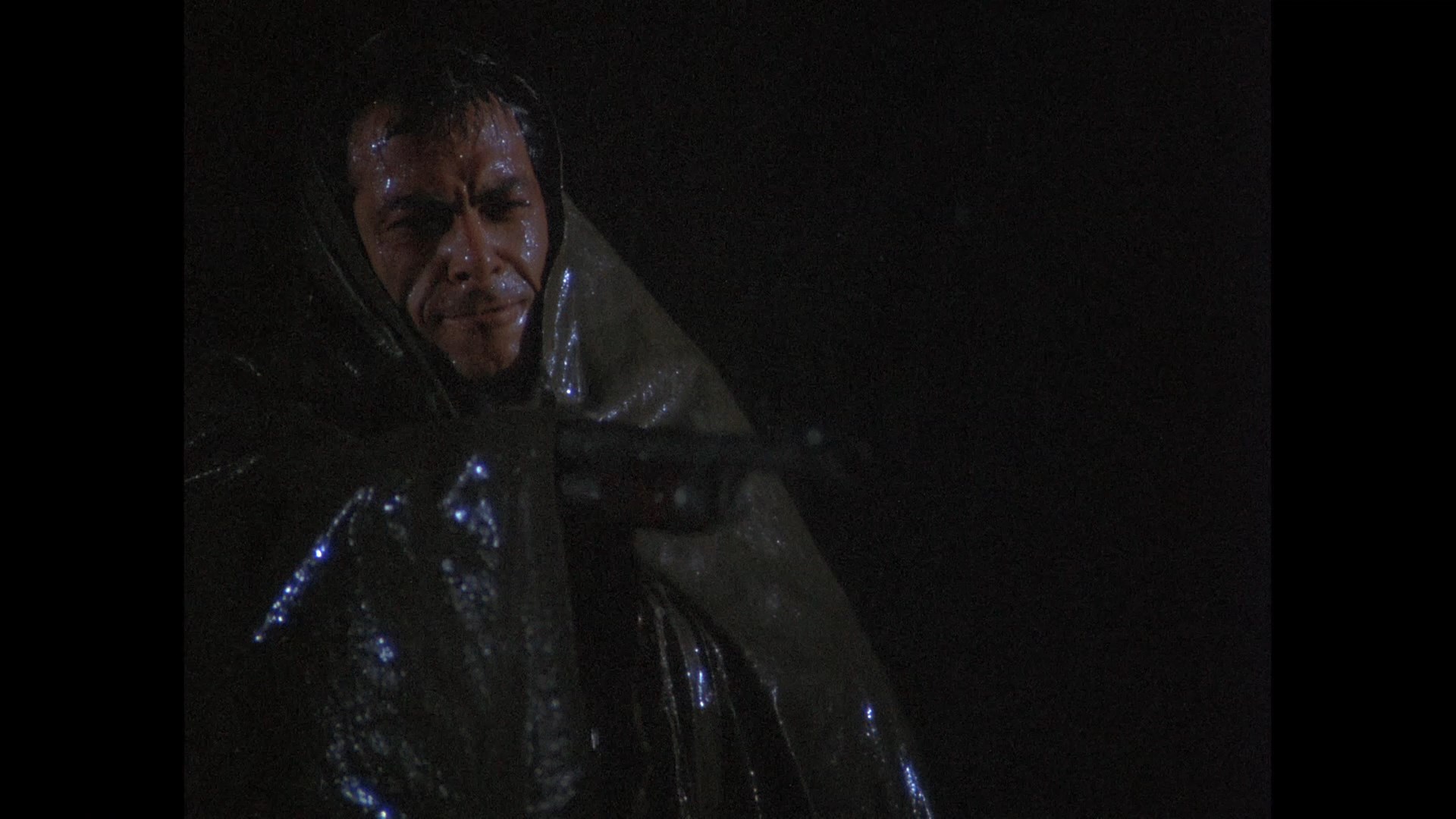 cut is also missing some material from the TV cut including a nifty little shock jump, so it was nice to have that original broadcast version back in circulation when ownership shifted over to MGM in the '00s. A fresh HD scan started making the rounds including a brief appearance on Netflix and occasional airings on the MGM HD cable channel, but a home video release didn't come along until Scorpion Releasing issued it on Blu-ray and DVD distributed by Kino Lorber. As expected, this is the original 73-minute TV version, still looking quite nice here and much better than we got when it used to turn up over the air. Film grain looks natural, the dark scenes are crystal clear, and apart from some minor white specks here and there, the elements have been kept in good shape; that goes for the DTS-HD MA 2.0 English mono track as well, which comes with English SDH subtitles. A new audio commentary by the reliable team of Amanda Reyes and Daniel Budnik, who manage to load the compact running time with lots of info including stats about the ratings, the differences between the two versions, the interesting subtexts about Vietnam vets and gender stereotypes, and the credentials of the personnel including music composer Fred Steiner (Perry Mason). Also included are bonus trailers for The Chosen (a.k.a. Holocaust 2000), The Psychic, Rollerball, Trackdown, Slow Dancing in the Big City, and Last Rites.