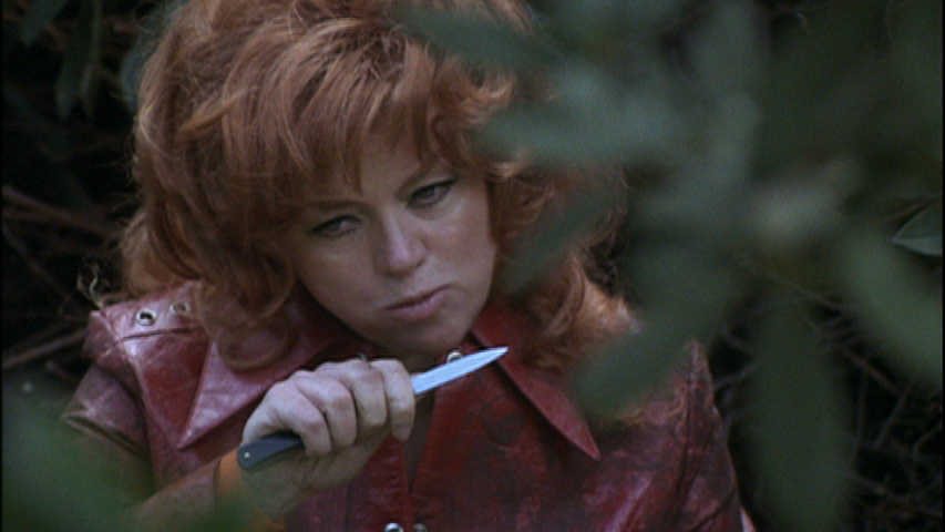 That superior master appears to be the same source used for Scorpion's DVD, which is about as colorful and robust as this low budget and sometimes dark film could be under the circumstances; the daylight scenes appear to be crisp and satisfying, while the crucial final scenes are much clearer and easier to follow than the murky old VHS version. Don't expect the robust visual fireworks of the horror duo's more familiar Hammer fare; this looks more like an episode of The New Avengers, and under those circumstances it's just fine. Like Scoprion's other recent horror output, this is branded as part of "Katarina's Nightmare Theater" and features horror hostess Katarina Leigh Waters, who starts off immolating herself with birthday cake candles and then offers an informative, quick sketch of the film's history and principal players. Some step-through liner notes by Christopher Gullo praise the film's virtues and cover some of its unusual creation and a few memories from Strong and Sasdy, and the disc closes out with the fiery theatrical trailer and bonus ones for The Devil Within Her (of course), Humongous, Final Exam, and The Incubus.