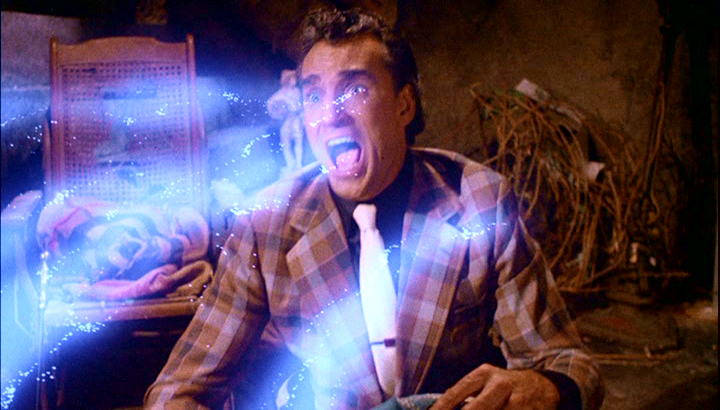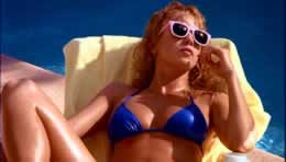 Practically a love letter to Corman's earlier films, Not of This Earth pelts the viewer with loads of stock footage right from the opening seconds with a spaceship prologue and a later flashback swiped from Galaxy of Terror, along with a breakneck (and somewhat baffling) opening credits sequence that mashes together highlights from Forbidden World and Humanoids from the Deep, among others. Even Hollywood Boulevard pops up with a brief stalking scene for good measure, along with its "Miracle Pictures" opening studio card. Some amusing stunt casting helps, too, including buxom appearances by Ava Cadell (aka sex therapist Dr. Ava), Critters 2's Roxanne Kernohan, Hollywood Hot Tubs' Becky LeBeau, Night of the Comet cutie Kelli Maroney, and of course, omnipresent B-movie queen Monique Gabrielle. Surprisingly, even Traci herself supplies a bit of skin in two scenes, making this the last time she would ever appear undraped on camera.
