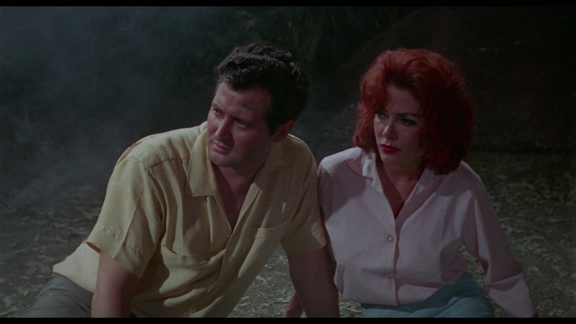 world." From there we meet our two heroes, horror writer Bob (Bates) and girlfriend Shirley (Mantis in Lace's Barrington, credited as Pat Barringer), whose twilight drive to a graveyard takes an unexpected turn when he skids off the