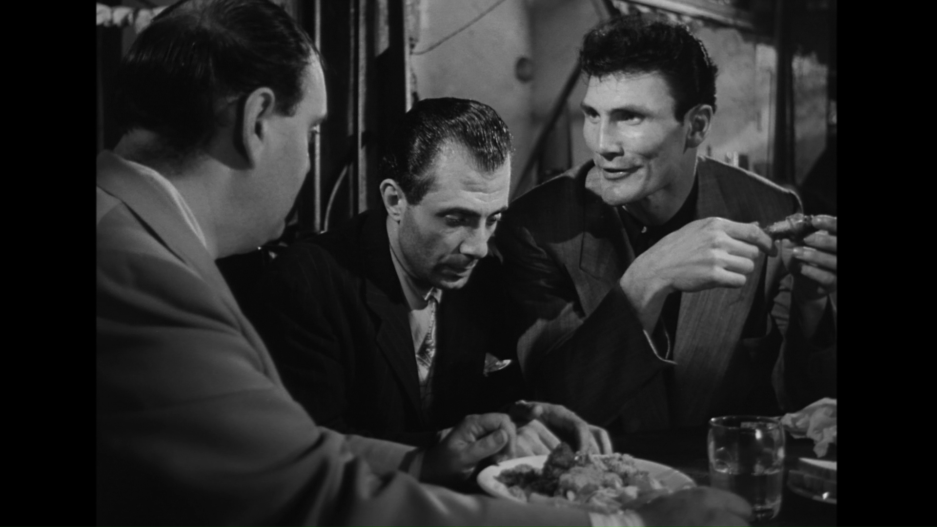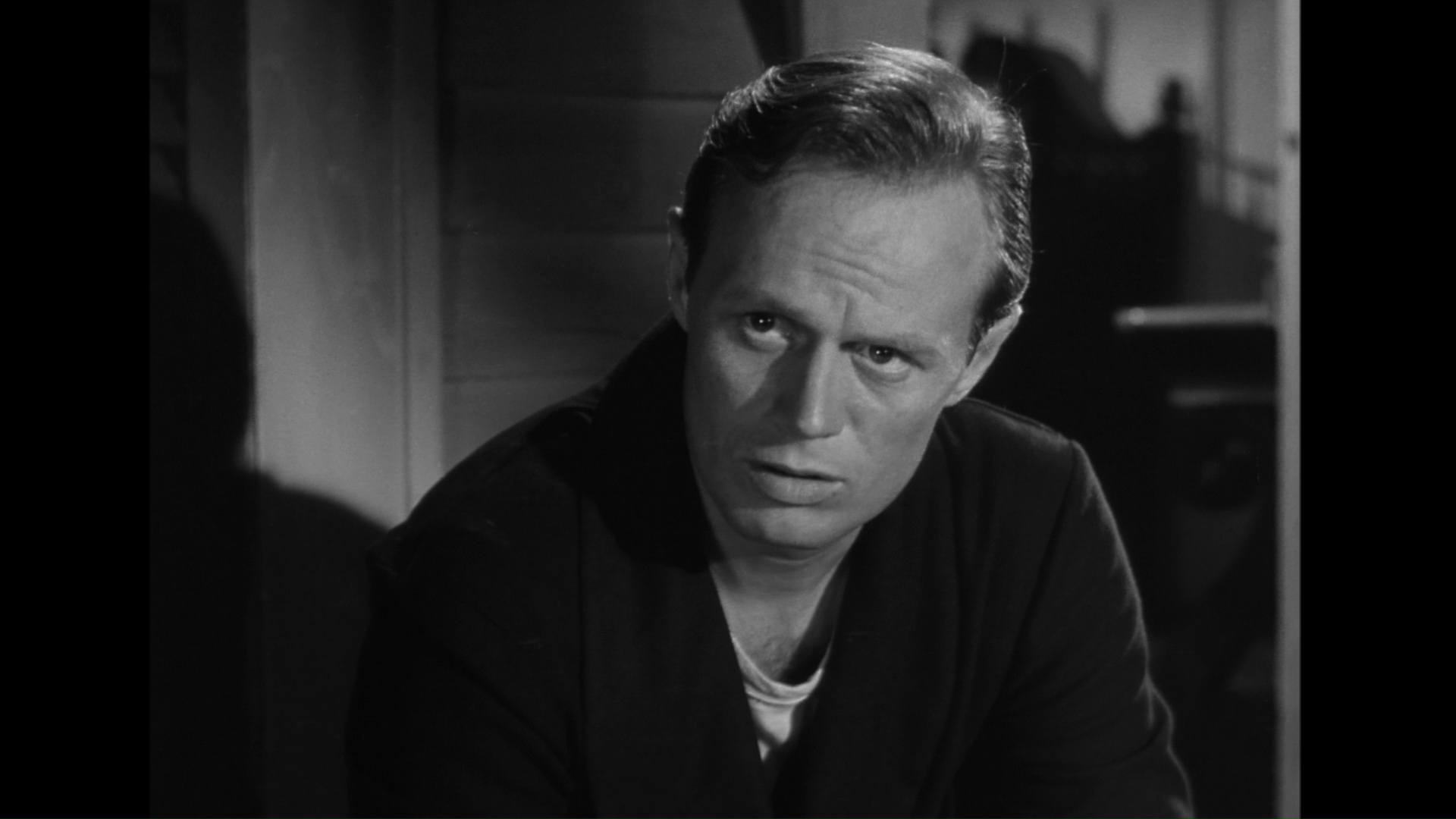 the 44-minute “Richard Widmark: Strength of Characters,” and the theatrical trailer. The film eventually made its Blu-ray debut in 2013 from Fox with the DVD extras ported over. The 2017 edition from Signal One strips things down a bit, dropping the mostly irrelevant Palance and Widmark specials while retaining the audio commentary and trailer. A gallery of production stills is also added, and thankfully the LPCM English mono track is the sole option without the awkward stereo remix in sight. The Fox-provided HD transfer appears to be true to the dark, gritty intended look of the film without any major digital manipulation; film grain looks natural and the experience, while not pretty in any sort of traditional sense, is quite satisfying.