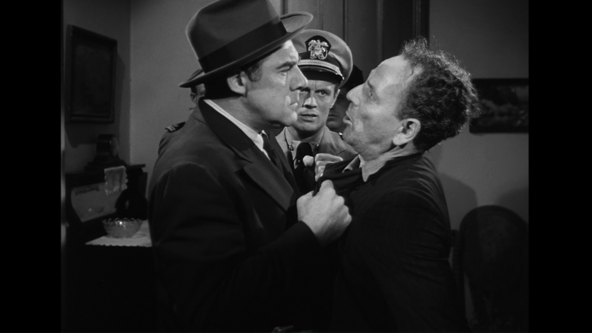 a big budgetary problem that kept this film from turning a profit, but in the long run it’s a wise choice that gives the film a grittiness and urgency ahead of its time. It’s also fun to see the large-framed, tightly-wound Palance intimidating Widmark in what amounts to an updating of the latter’s classic villain role in Kiss of Death, including a memorable fracas under a pier near the end. (Apparently Widmark was no less intimidated by his costar in real life!) Unfortunately the always solid Barbara Bel Geddes is saddled with the film’s weakest material as the obligatory concerned wife, an aspect that gets way more screen time than necessary when we could be spending it out on the streets. Also noteworthy is the sheer weirdness of seeing Zero Mostel, best known for his musical comedy chops, as Palance’s lackey; strangely, his greasy hair and awkward body language make him an ideal casting choice once you get over the initial shock.