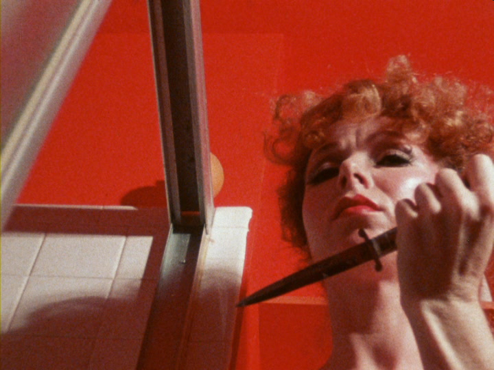 Definitely a few rungs lower in terms of production value and professional gloss compared to the movies mentioned above, Steckler's adult output has been a ragged staple of public domain labels since the VHS days, culled from rough-looking prints and, by the looks of it, many shot in 16mm. First up here is Red Heat, a Las Vegas travelogue put together to tie together a bunch of random X-rated loops. It's all narrated by "Sutters" (an anonymous female actress) offering some background about the performers in the vignettes, such as a butch married woman named Nancy who decides to explore her sexuality by doing porn. There's also a guy who decides to get some on the side once too often to the consternation of his frizzy-haired girlfriend, Red, who stabs him in the shower and justifies the film's title by strutting around the Strip and posing for a nudie photographer. She also likes to lie around fondling her switchblade while a guy on a motorcycle rides around presumably looking for her, intercut with lots of other anonymous people trysting while "Sutters" and her cameraman, "Herb," bark directions in the background. (One has to wonder whether the POV-shot scene with Herb and one lass is Steckler himself.)