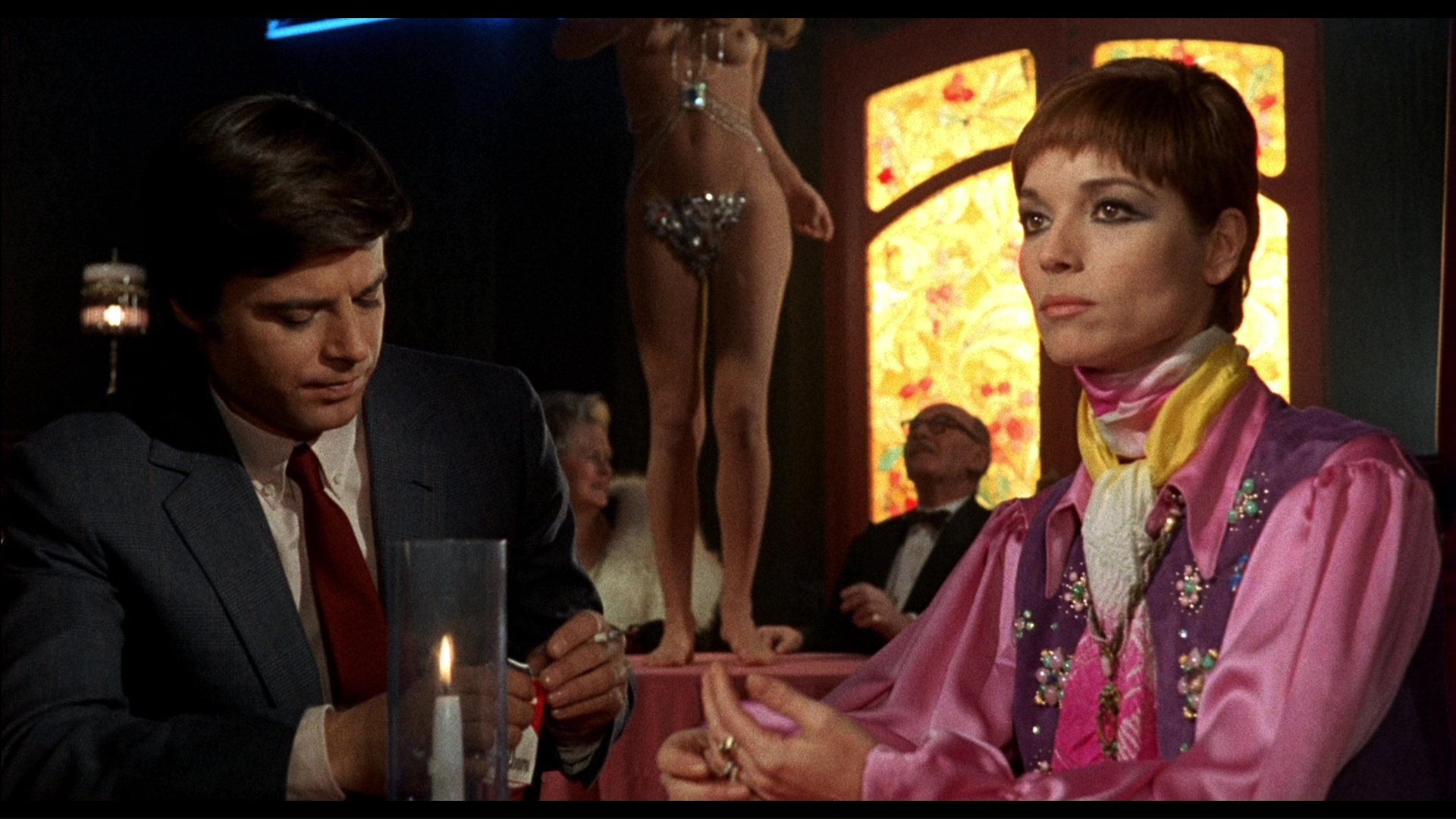 extra four minutes of saucy footage missing from prior English releases. It would be bad form to list the details, but let's just say that Mell and Martinelli fans will be very happy with what they see-- and anyone annoyed by the film's relative lack of sexiness considering its title will find this release much more satisfying. On the other hand it's also missing quite a bit of incidental footage, almost nine minutes' worth, including some extra chit chat and a lot of driving coverage around San Francisco. The familiar English dub track is present here and is solid enough despite the flat dubbing of Sorel. (Whoever dubbed Mell certainly jumped in with gusto!) However, the Italian track feels more organic to the film, has more dialogue than the English track, and uses Ortolani's score much more prominently, though the final scene with the radio reporter still plays far better in English. (For some reason Mell's first scene always has her clearly speaking in a hallway without any words coming out on both versions, which appears to be sloppy sound editing in the original film.) It's really a toss-up between the two, but newcomers may find the Italian track with its more complete and literate English subtitles the more accessible option. As for extras, you get the very long and spoiler-laden English theatrical trailer (as One on Top of the Other), which touts this as the first film to realistically show the incarceration and execution process at San Quentin, and a bonus soundtrack CD containing the full 11-track version of Ortolani's score.